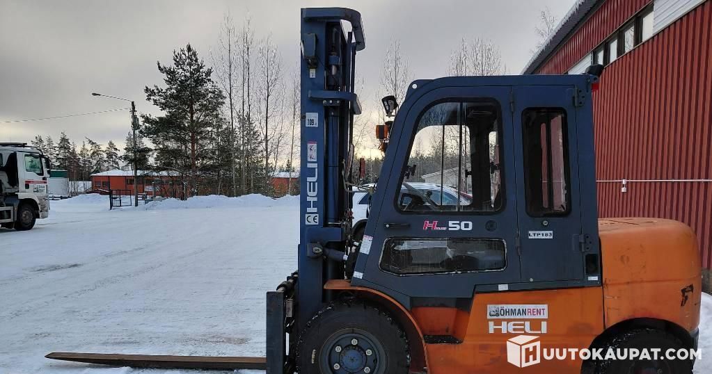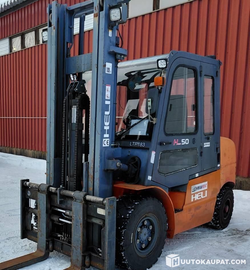 Very low-hours diesel forklift. Imported by our company and serviced by us every year. Fork positioner with integrated mounting and side shift. Well-maintained, reliable used truck with a Mitsubishi S6S diesel engine. Lifting capacity 5,000 kg, lifting height 4,000 mm, pneumatic tyres.