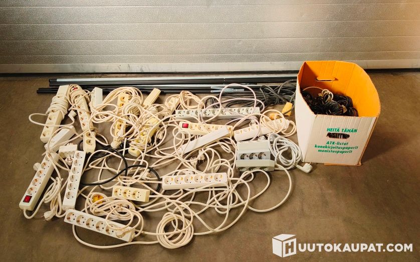 Large quantity of extension leads and multi-socket outlets (many)