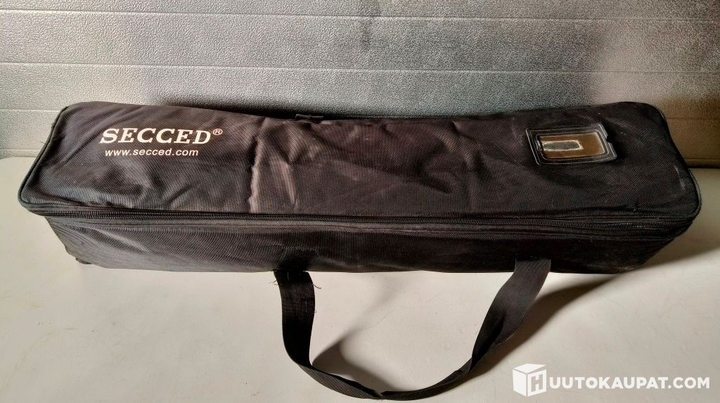 Professional SECCED video support. The package includes the SECCED SC-V15/100RP fluid head, sturdy video tripod legs and a SECCED transport case. The photos also show a ground spreader, which keeps the legs firmly in the correct position.