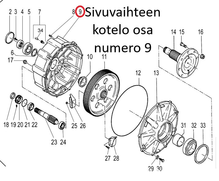 Auxiliary gearbox housing for Sampo 3000 and Comia 10/12 series