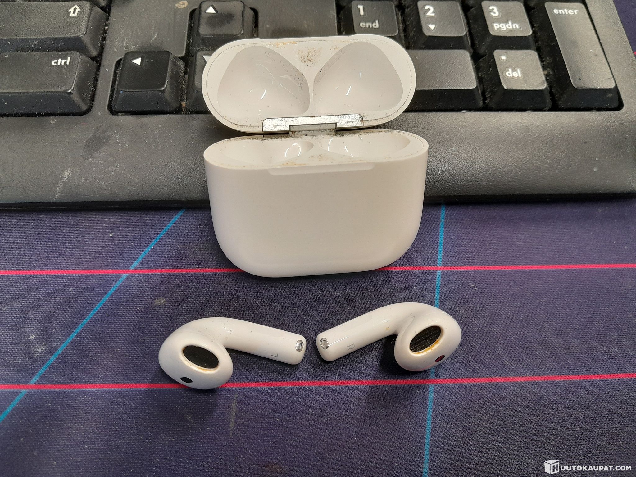 Used — includes earbuds, charging case and charger.