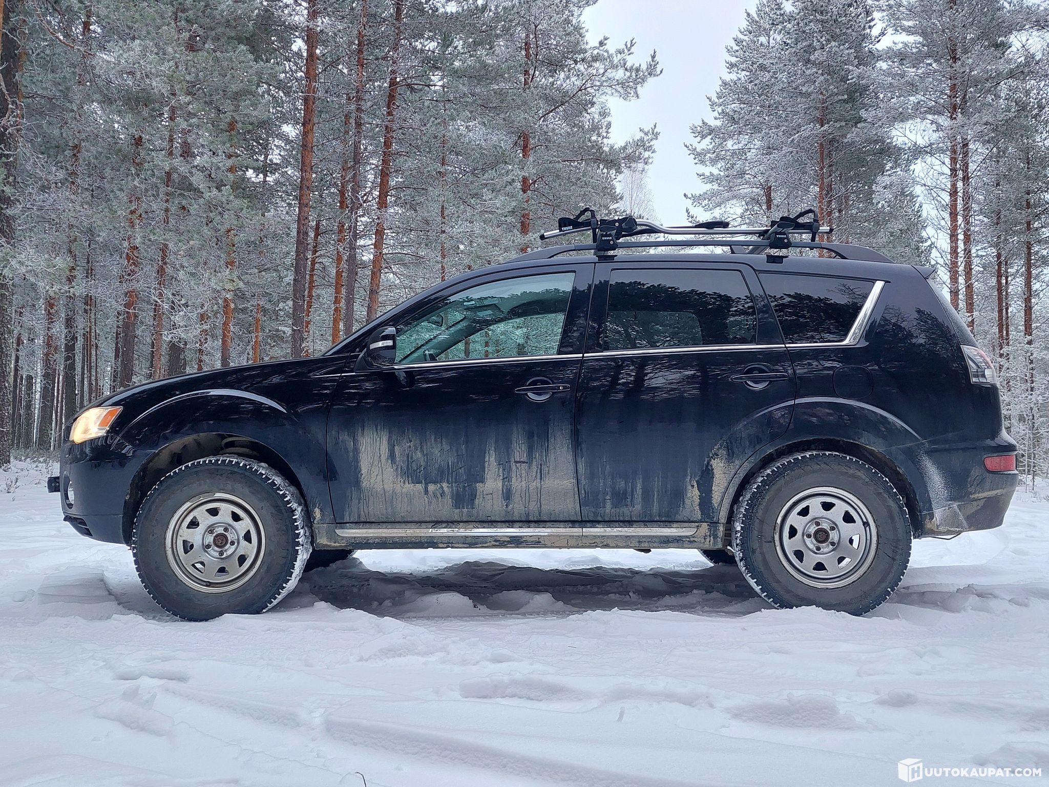 Maximum-size studded winter tyres on 40.6 cm steel wheels, which provide noticeably more ground clearance compared with standard.