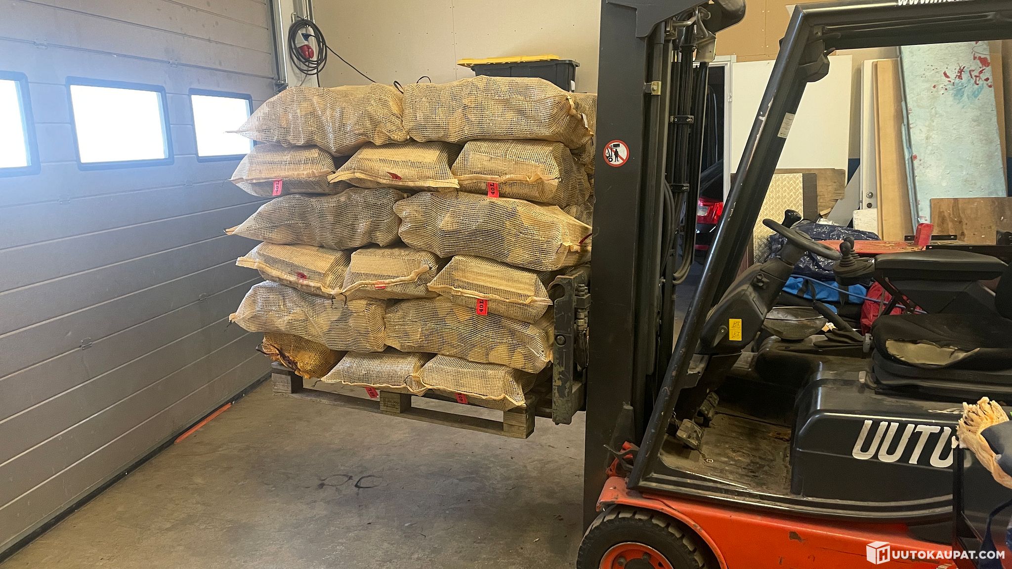 In 30 litre bags, approx. 30 cm bone-dry mixed firewood. Loaded into the vehicle from a heated hall.