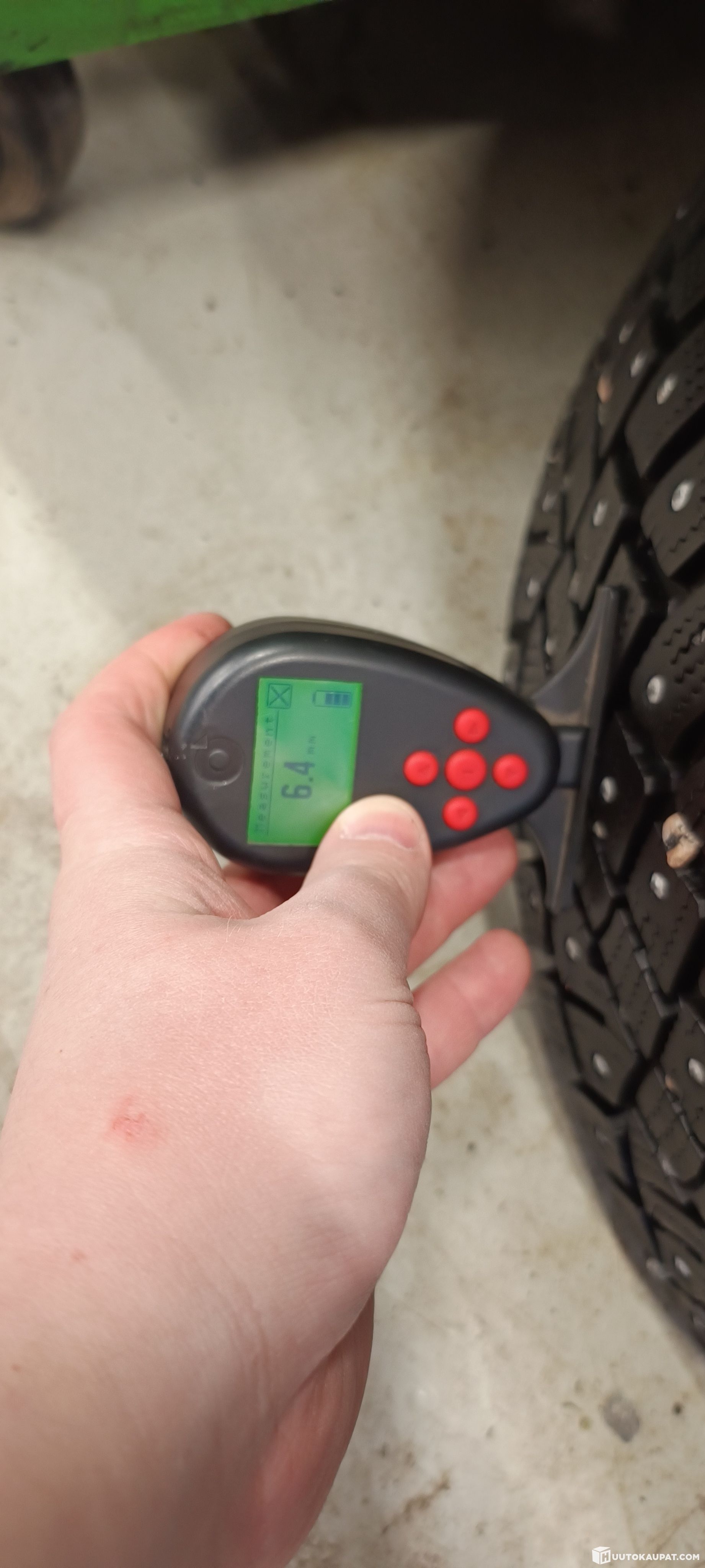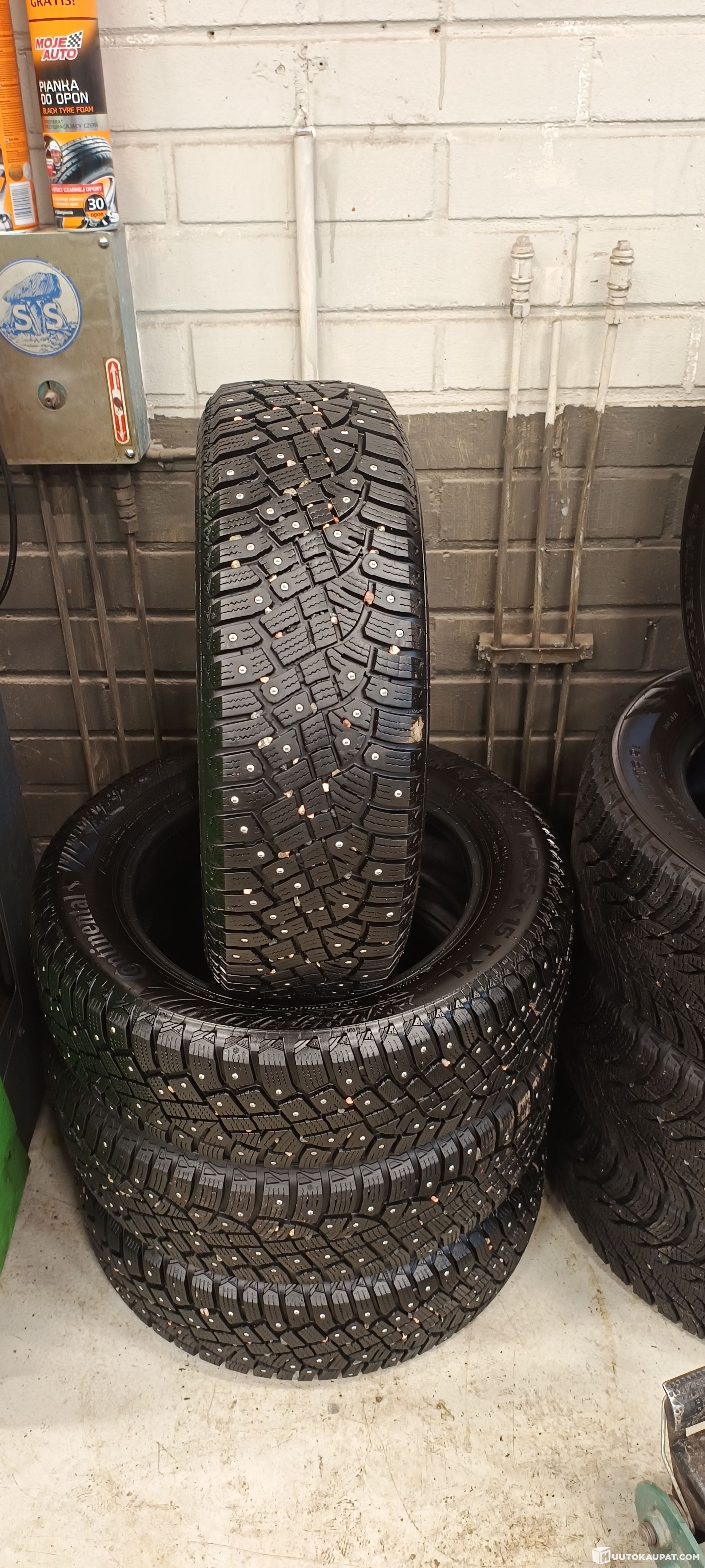 For sale: the set of tyres shown in the pictures (4 pcs). Used set. Tread 6.6 mm - 6.1 mm. Studs intact!