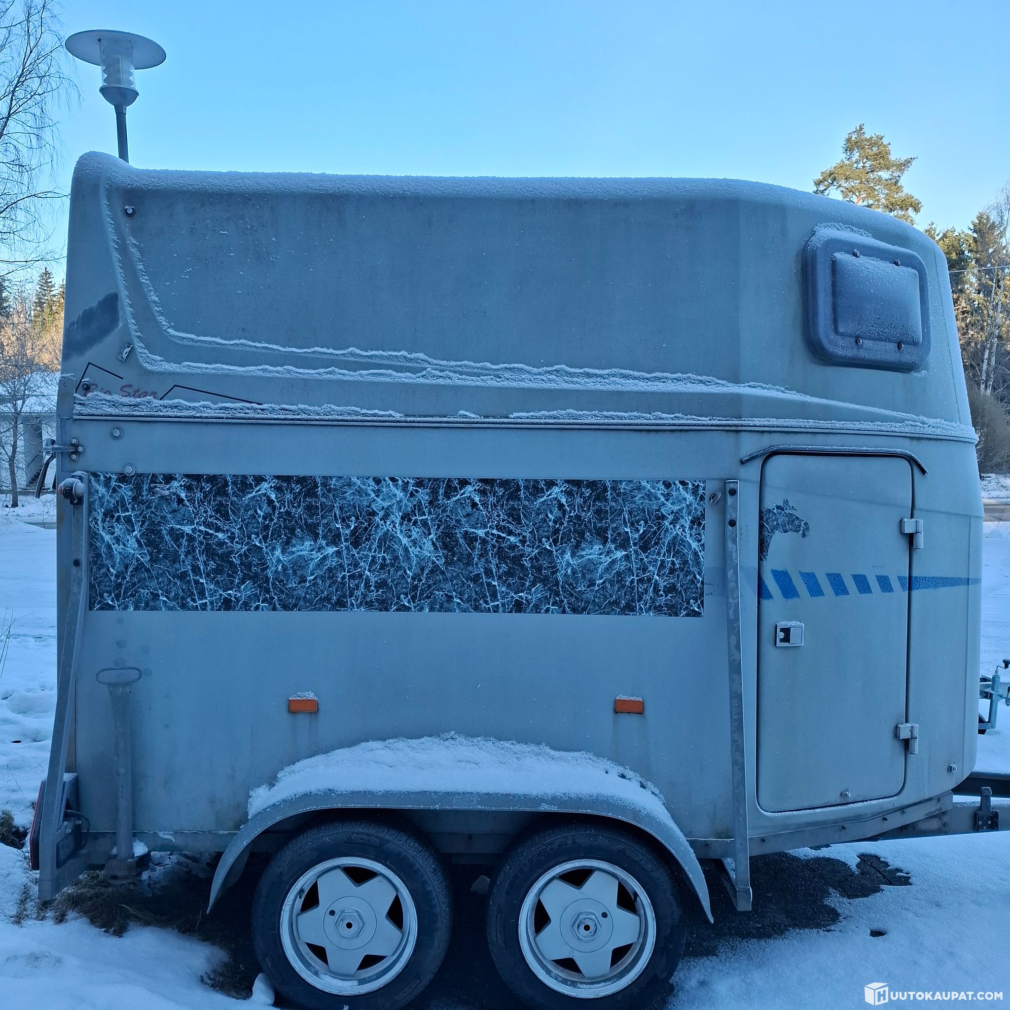 For sale: a well-maintained two-place horse trailer. The trailer has been carefully looked after and reinforced – the bodywork and chassis are protected and sealed. All hinges have been welded and reinforced, and the rear gate cylinders have been replaced with new ones. The locks have been refurbished and work flawlessly.