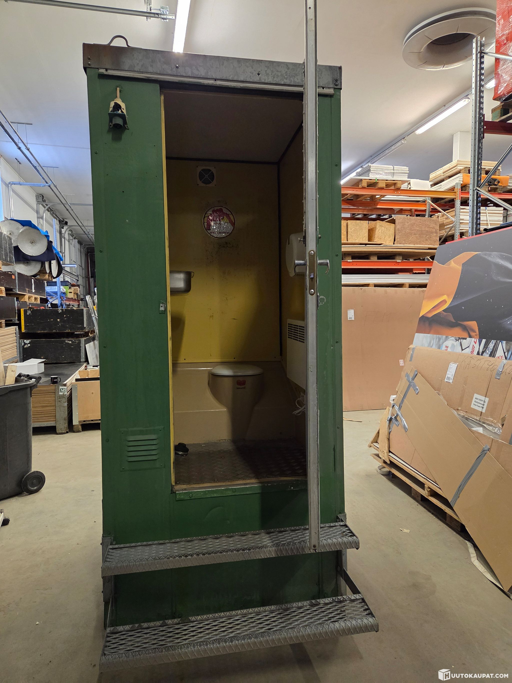 An insulated construction-site toilet is up for auction; it has been removed from rental service. The cubicle shown in the pictures and in the condition shown.