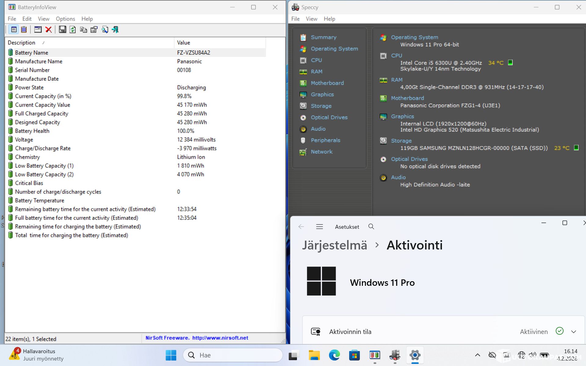 Finnish-language Windows 11 Pro is installed; can be supplied with Windows 10 Pro on request.