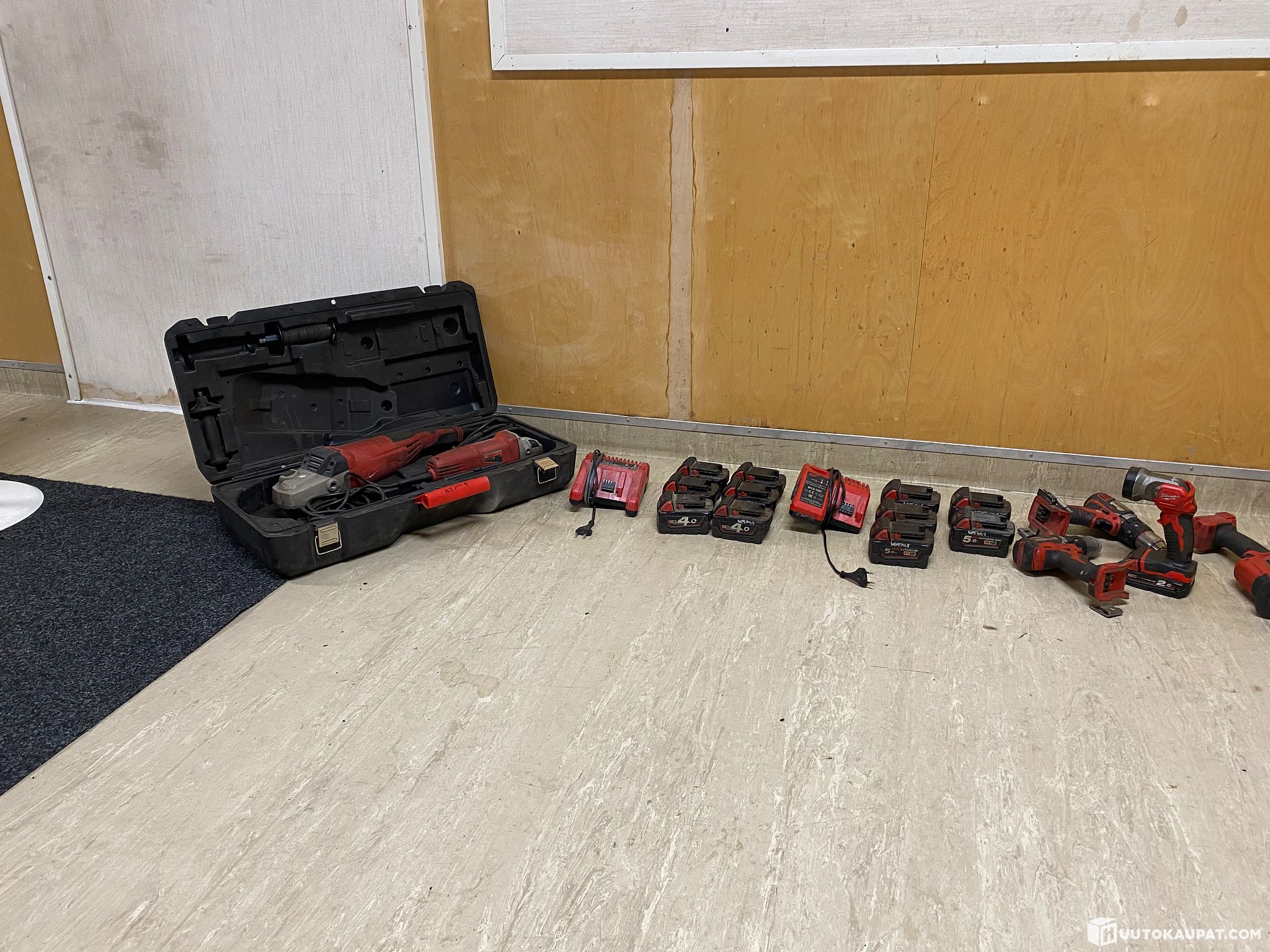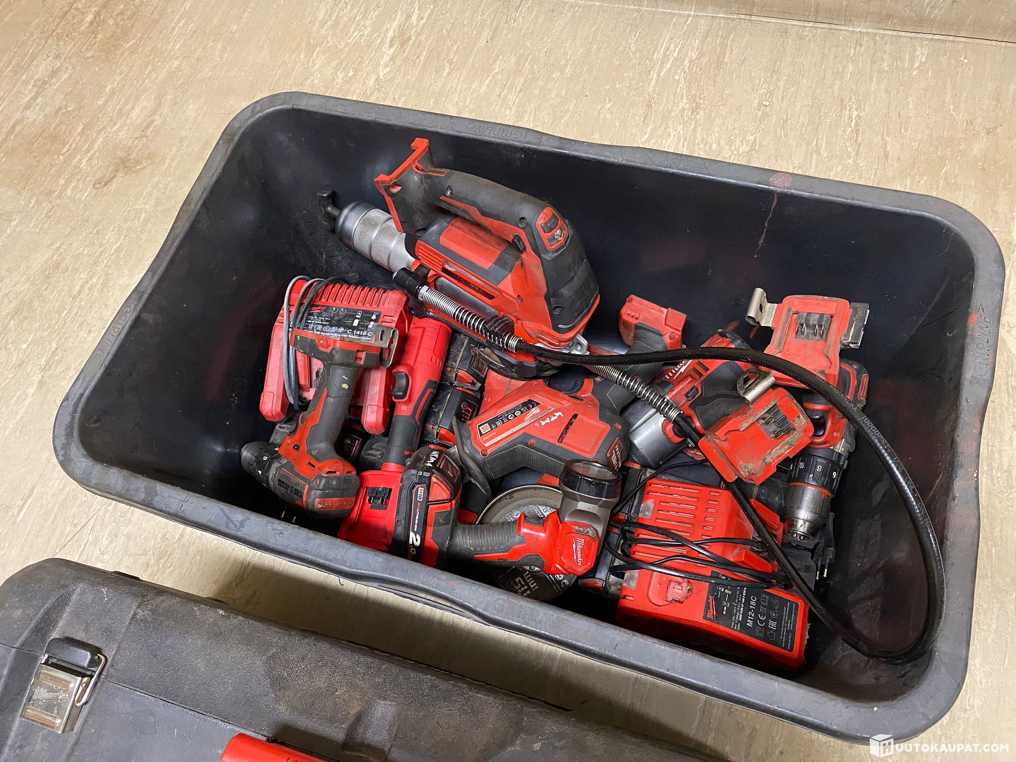 High-quality set of lightly used Milwaukee tools. The cordless drills are actually the most used and oldest, but they also work flawlessly. All tools are in solid condition and are original Milwaukee except for one cordless ratchet which is an imported unit (it works perfectly and is quite good, but it lacks torque for heavy jobs). The grease gun has used about 15–20 cartridges, and the reciprocating saw and impact wrench are the newest. The corded grinders have been used on a couple of projects. All batteries and chargers are functional. Overall in good condition as the tools haven’t been used much; however a few batteries flash while charging even though they work in use.