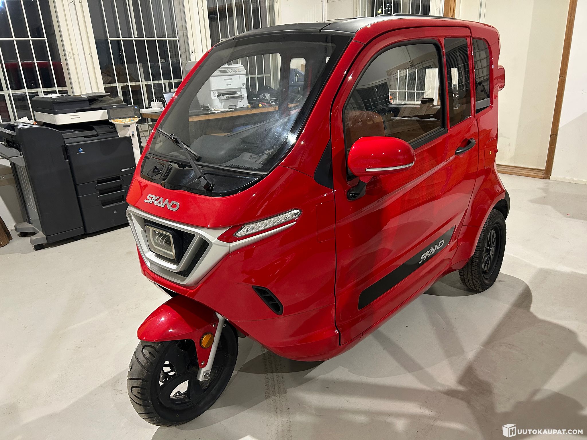 Skand's electric moped cars are enclosed models with either three or four wheels. The protected cockpit gives the driver extra safety and protection from rain, wind and cold. An electric moped car is convenient to use year-round, protected from rain and wind. For many, an electric moped car replaces a car or a bicycle. Thanks to low running costs, it is cheap to run and can be charged from a standard power socket.