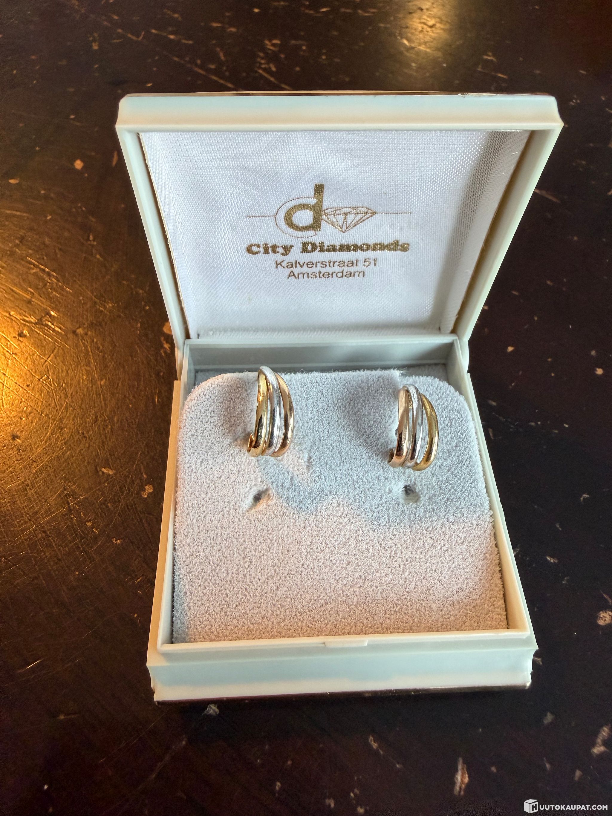 The estate is selling the gold half-hoop earrings shown in the pictures.