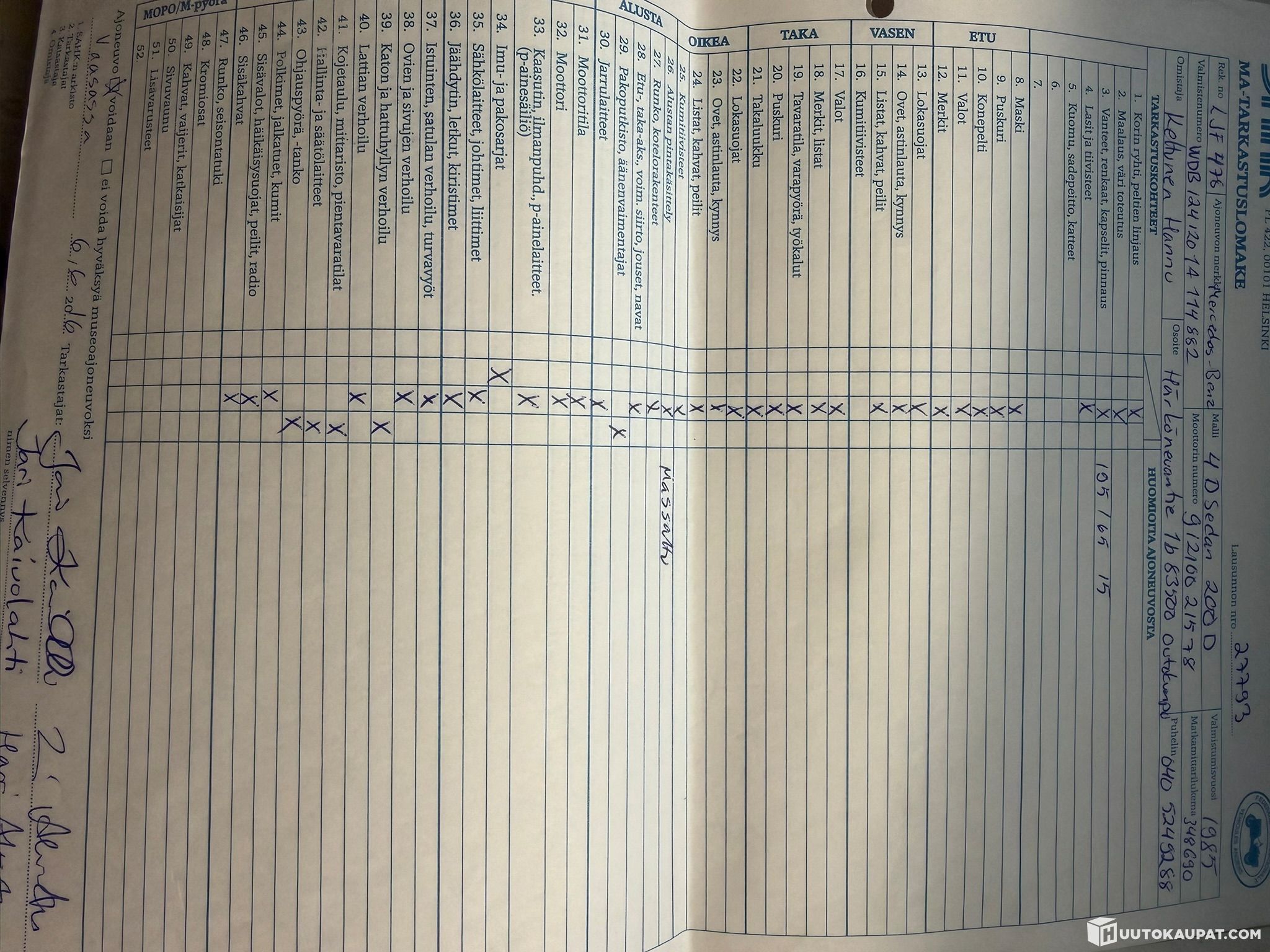 The vehicle must be collected within 7 days of the auction ending unless otherwise agreed - Huutokaupat.com.
