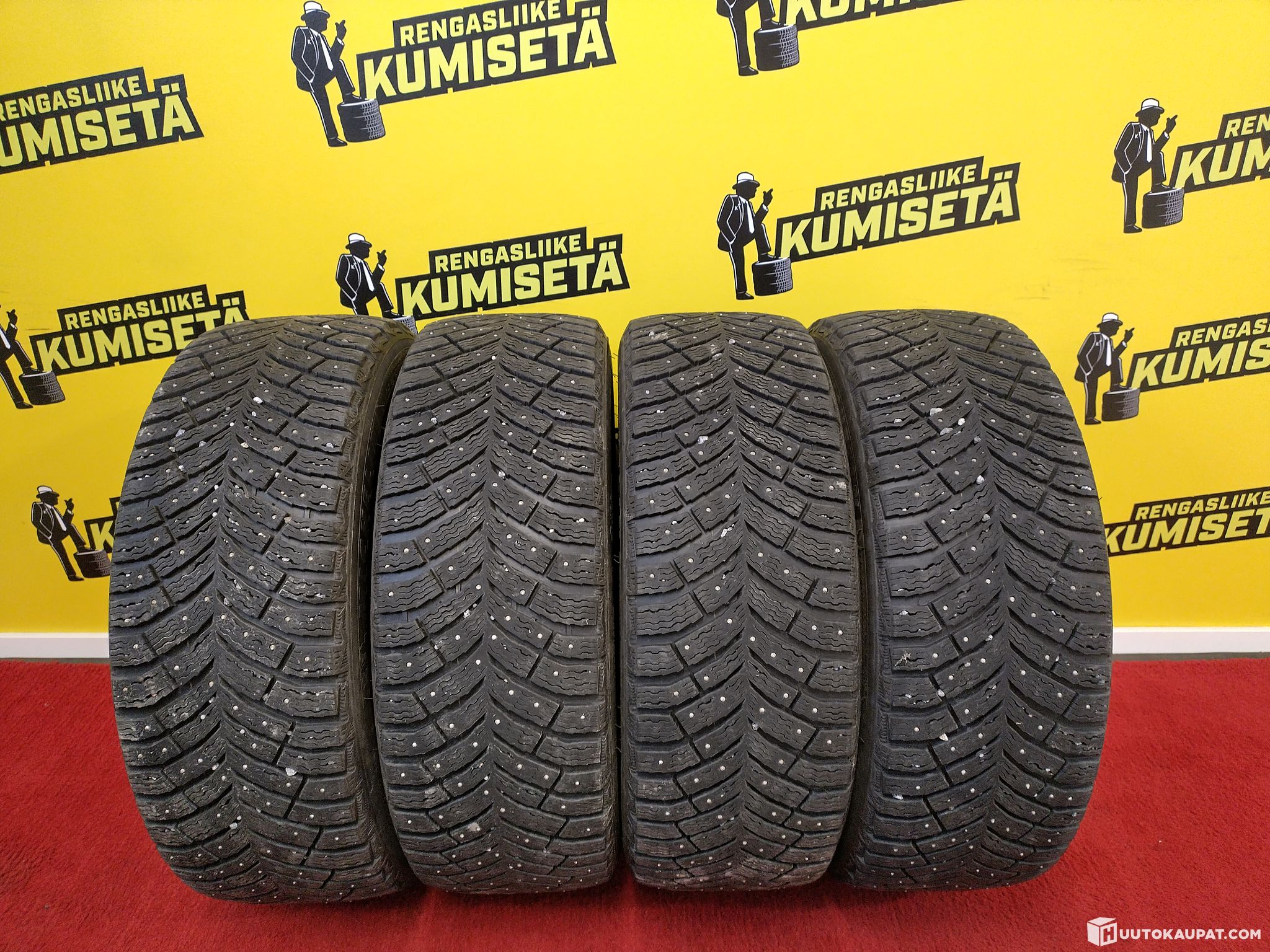 Tread depth approx. 7 mm on all tyres and studs in good condition.