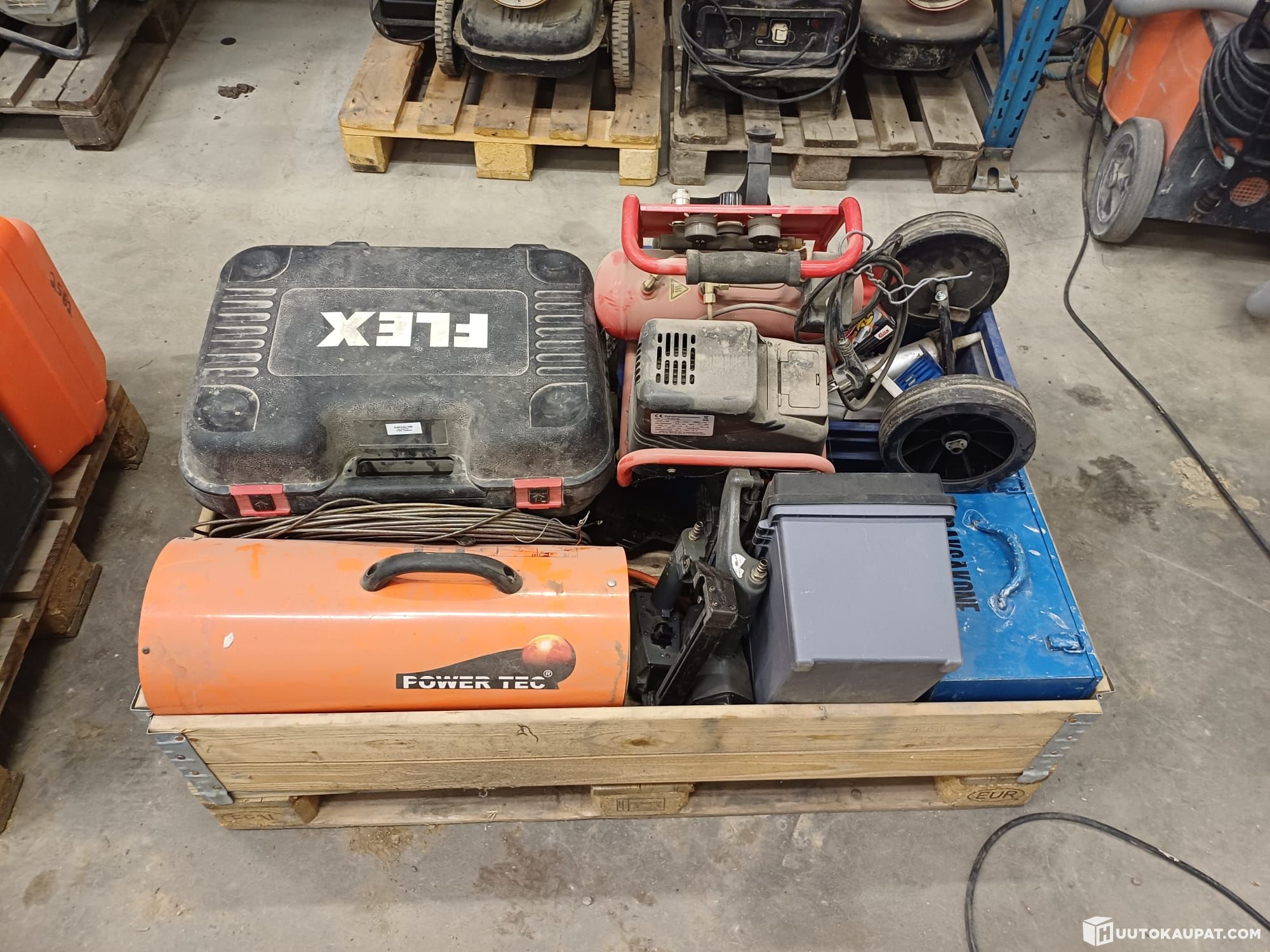 A pallet of tools and accessories.