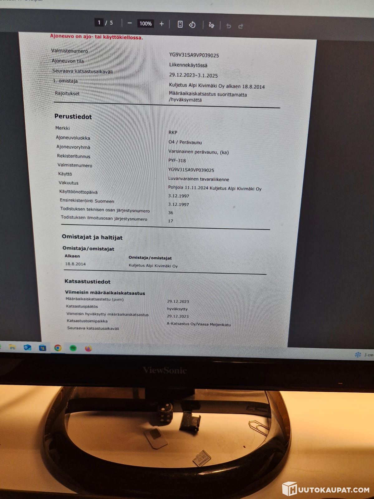 Kuljetus Alpi Kivimäki Oy lists, Huutokaupat.com sells