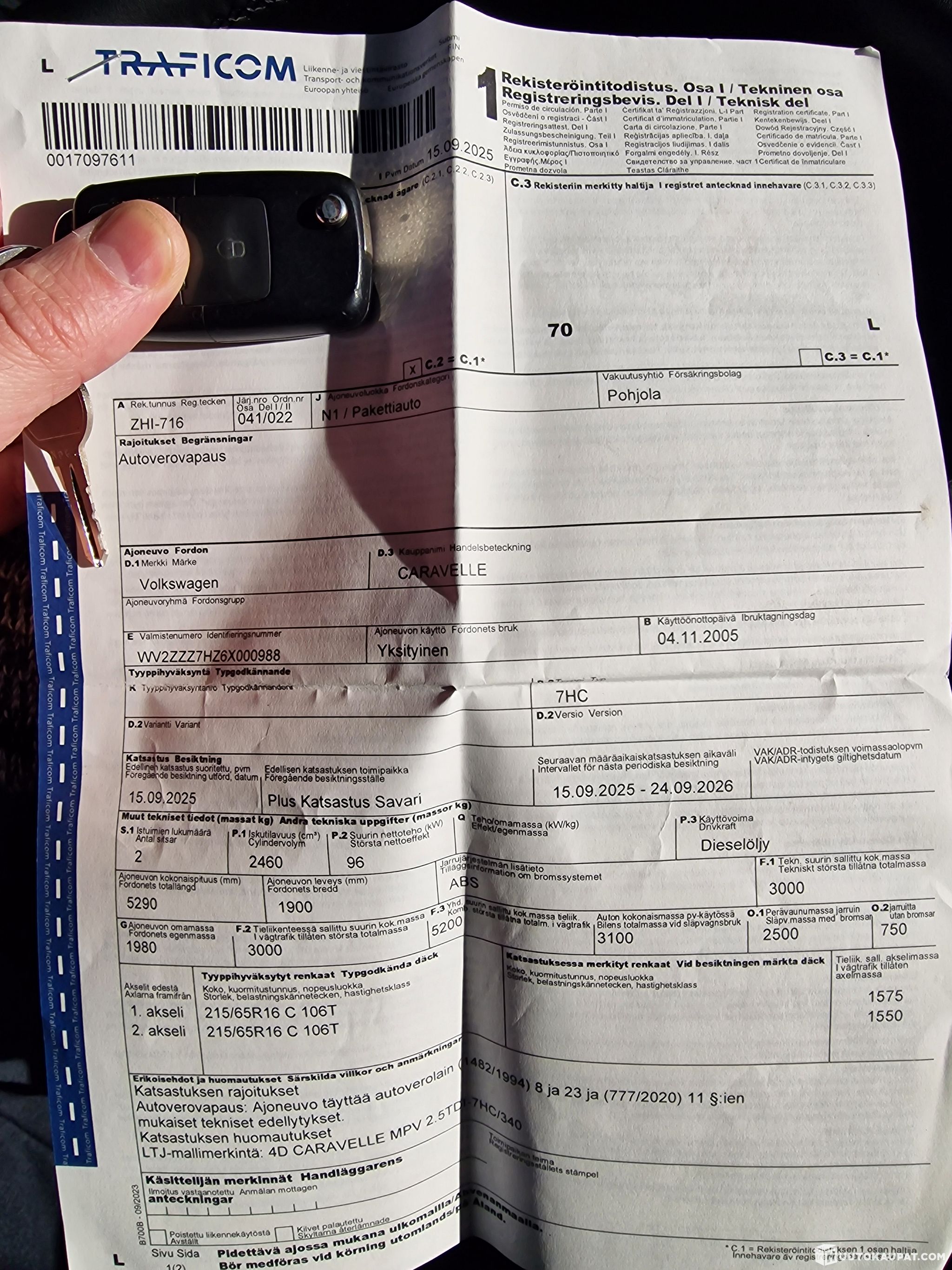 The vehicle must be collected within 7 days of the end of the auction unless agreed otherwise - Huutokaupat.com.