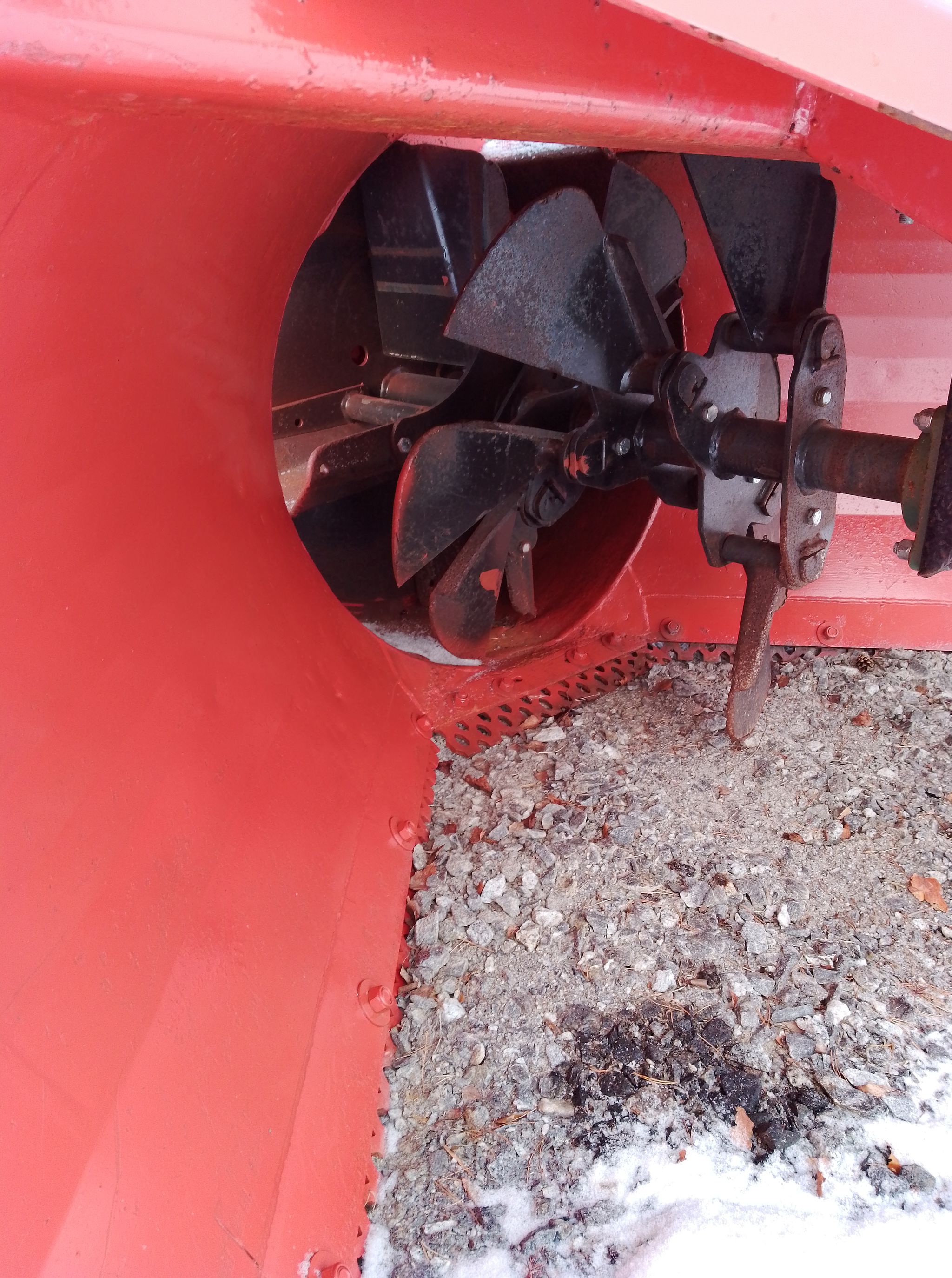 Normal wear on the feed and throwing paddles.