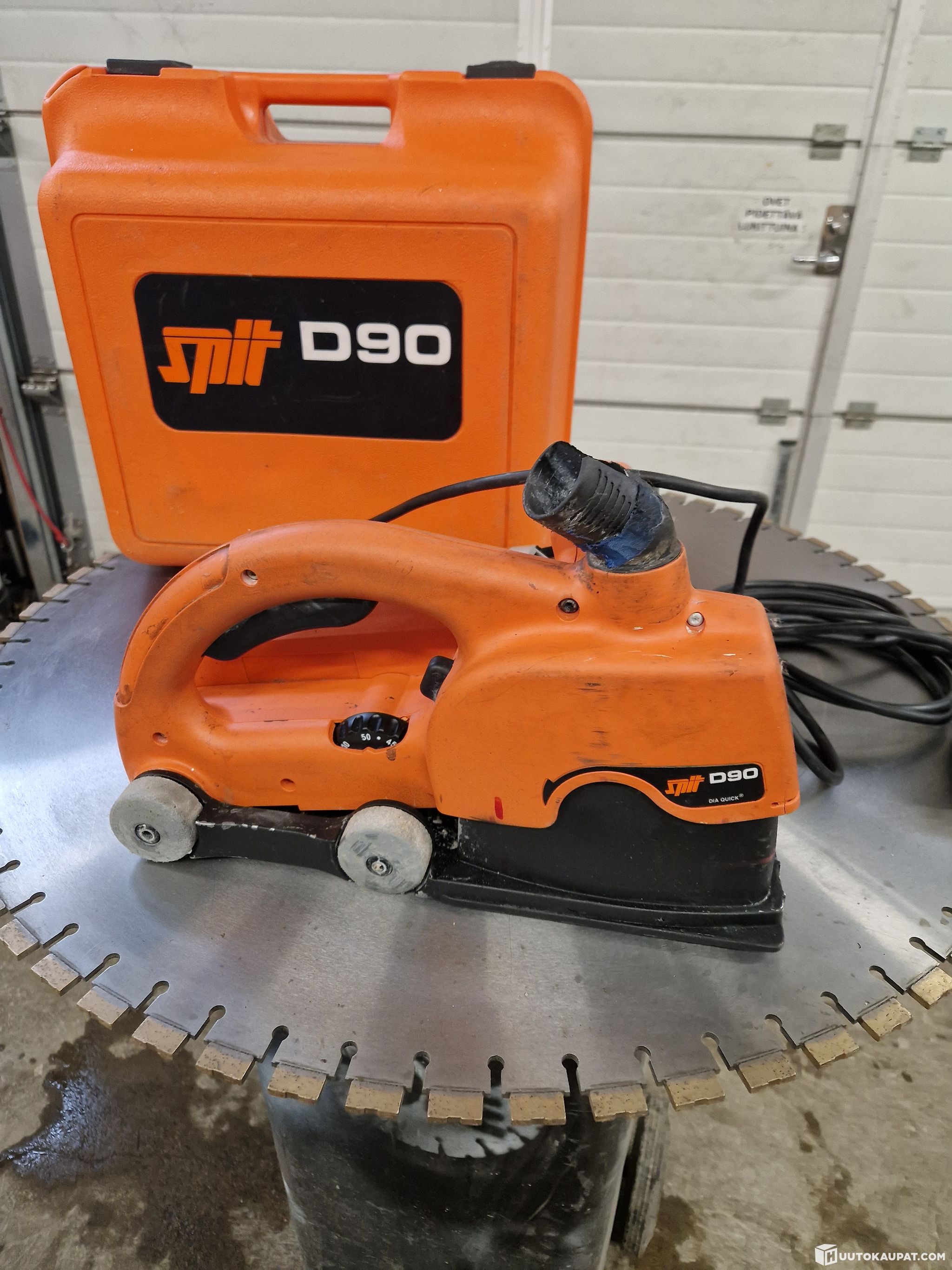 Good condition Spit D90 diamond groove saw. Box and a bundle of used blades included.