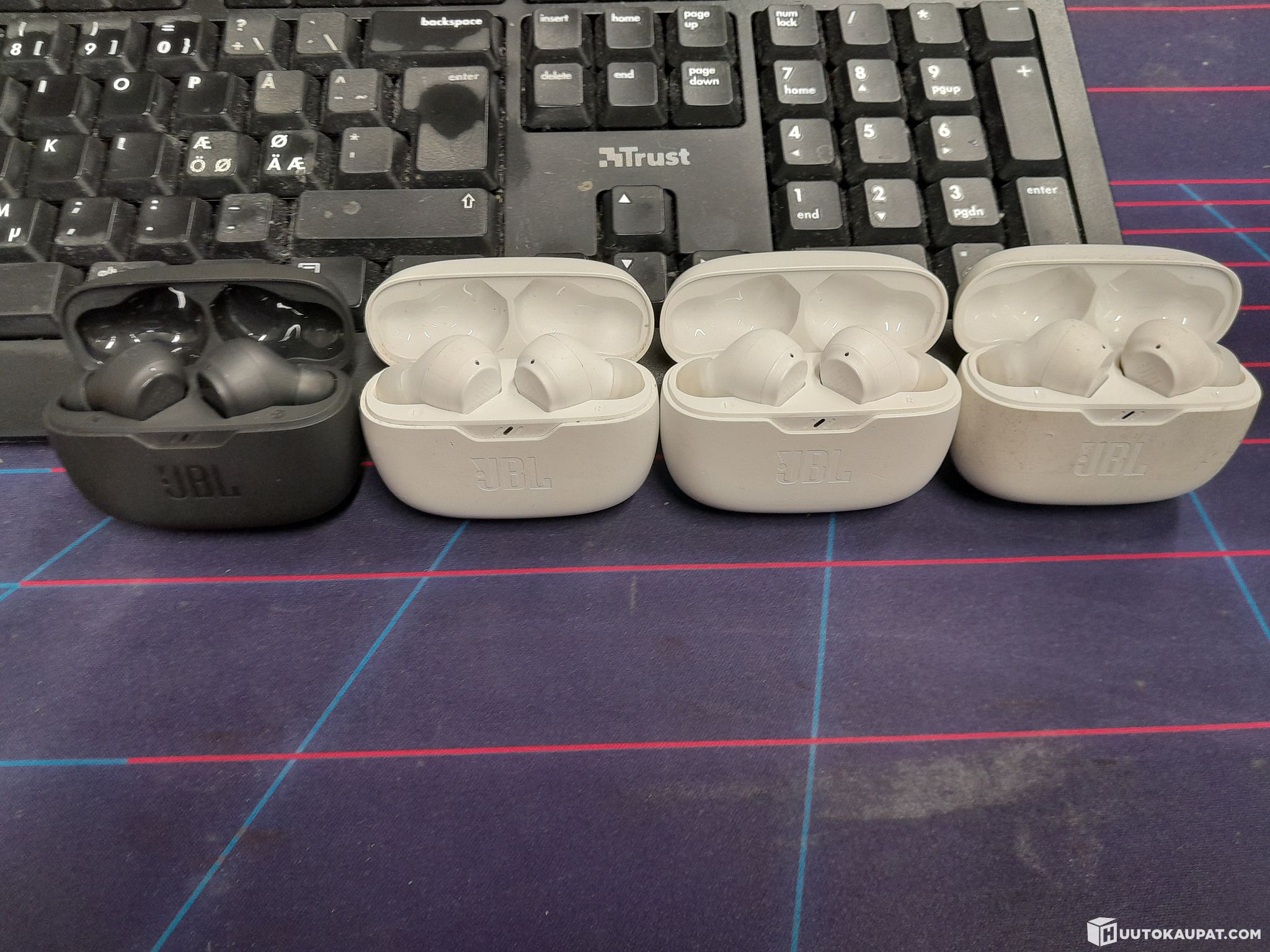 Used, includes earbuds, charging cases and chargers.