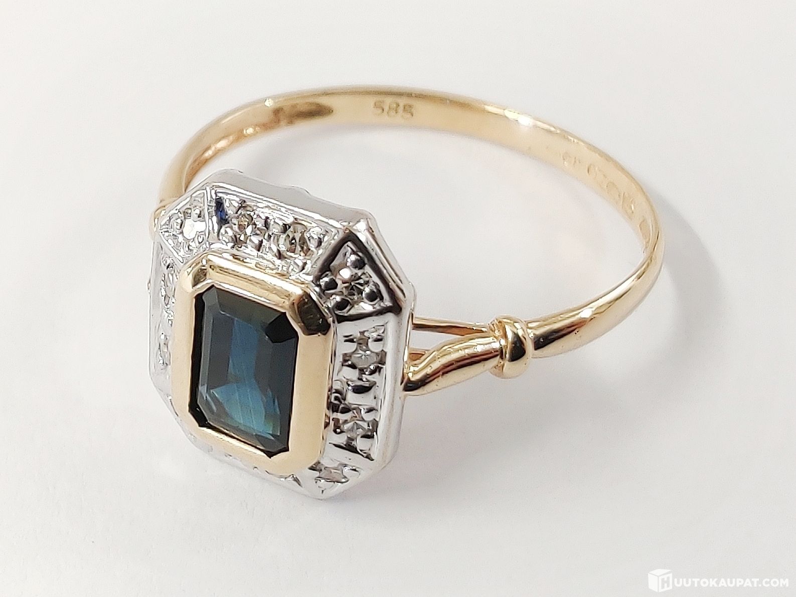 Beautiful diamond-sapphire ring in 585 14k gold.