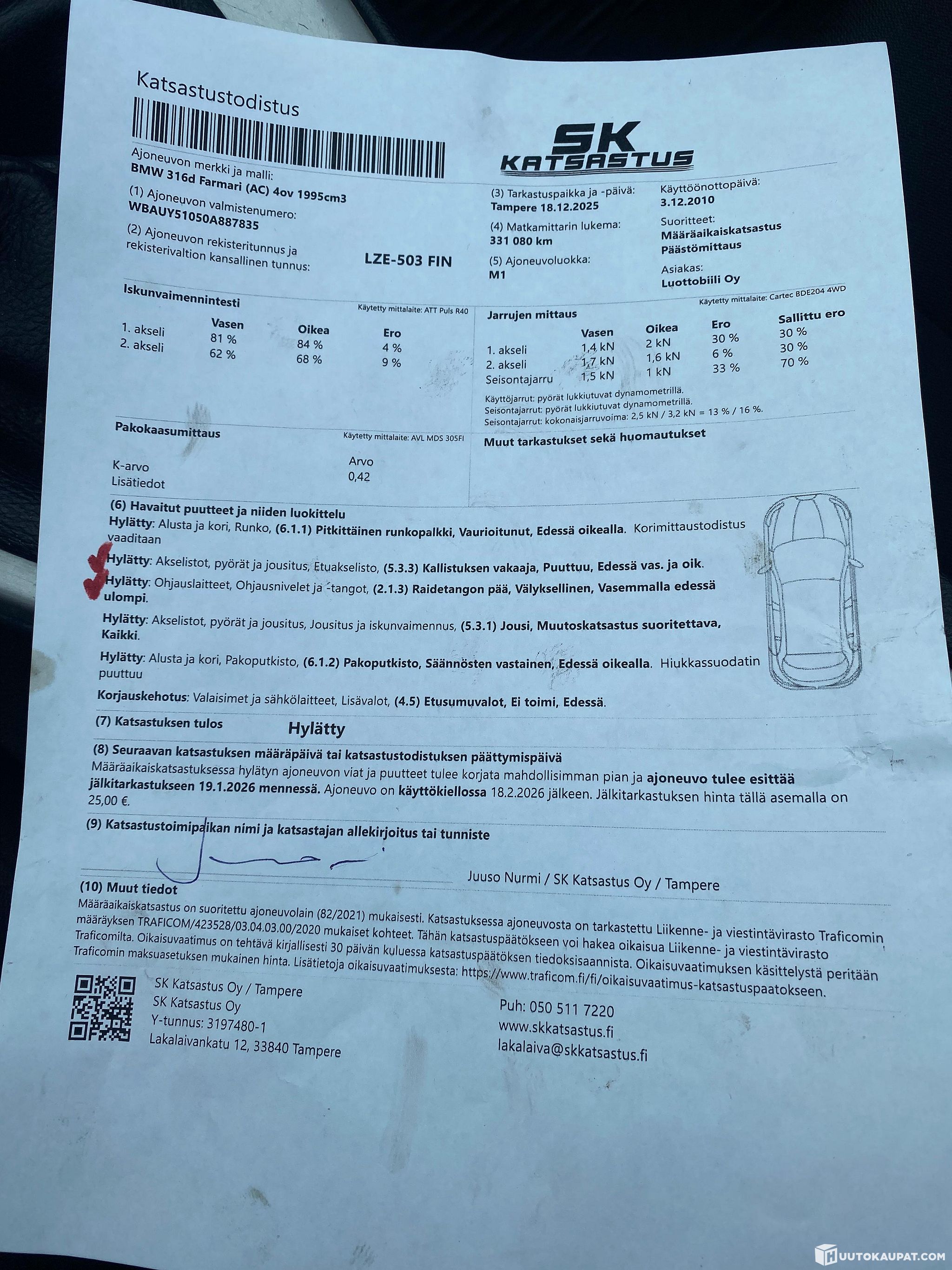 Modifications have been detected in the engine programming or exhaust systems, which means the vehicle is not roadworthy. The buyer is responsible for repairing the vehicle to make it roadworthy at their own expense. Specification: Hiukkassuodatin puuttuu