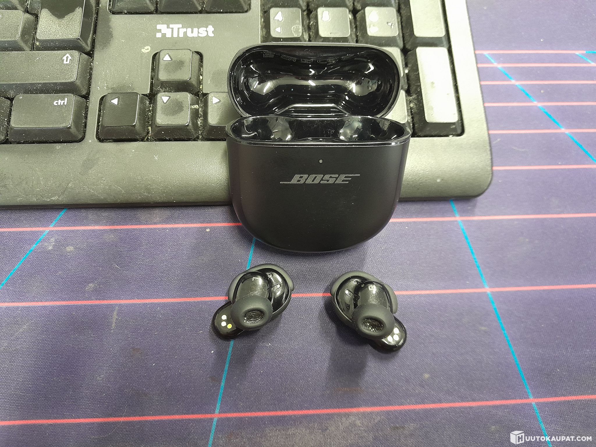 Excellent battery life: QC Ultra Earbuds offer up to 6 hours of listening (up to 4 hours with Immersive Audio active). The charging case provides three full extra charges, and a 20‑minute quick charge gives up to 2 hours of playback.