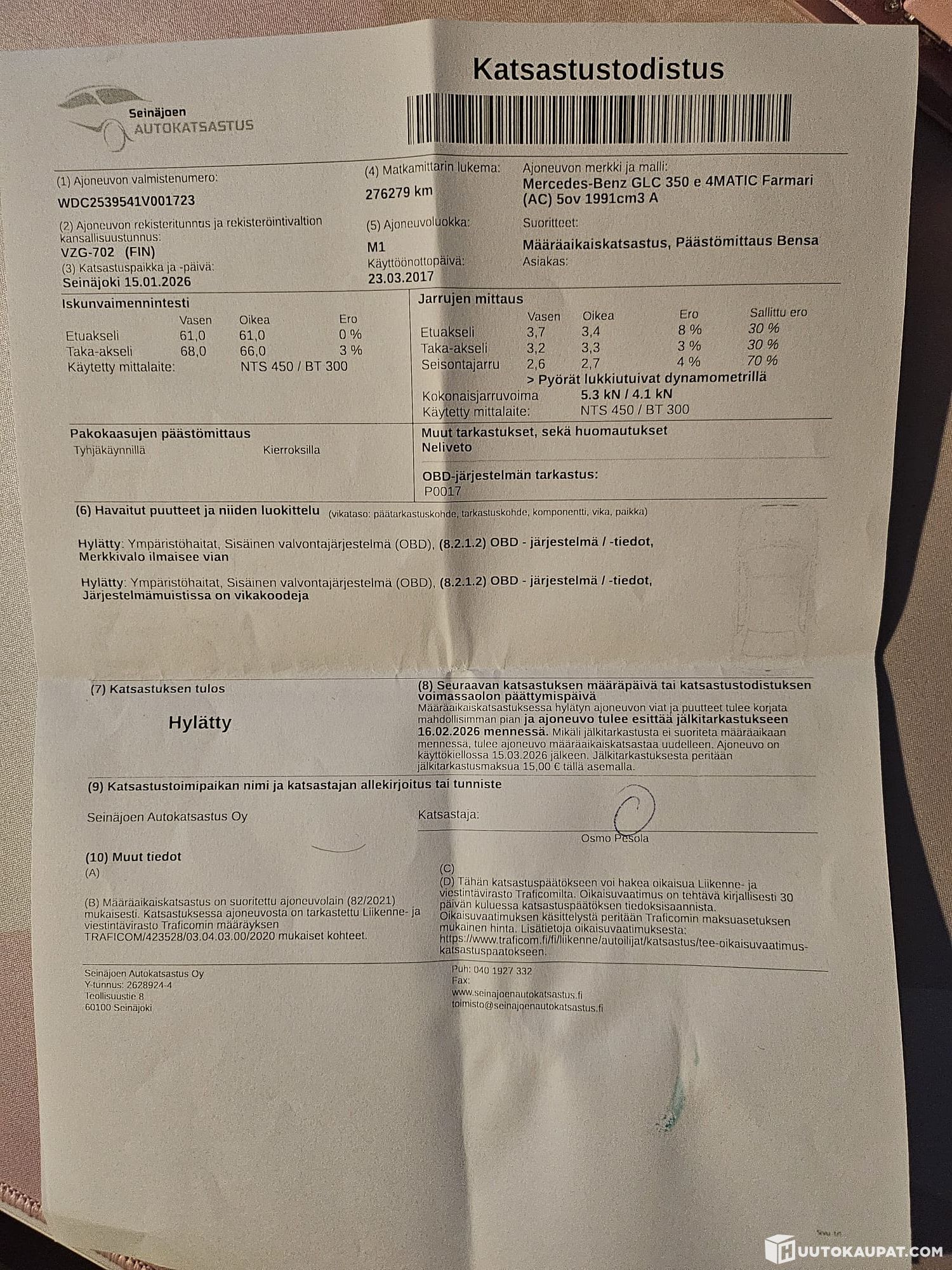 Periodic inspection 15 January 2026: Failed