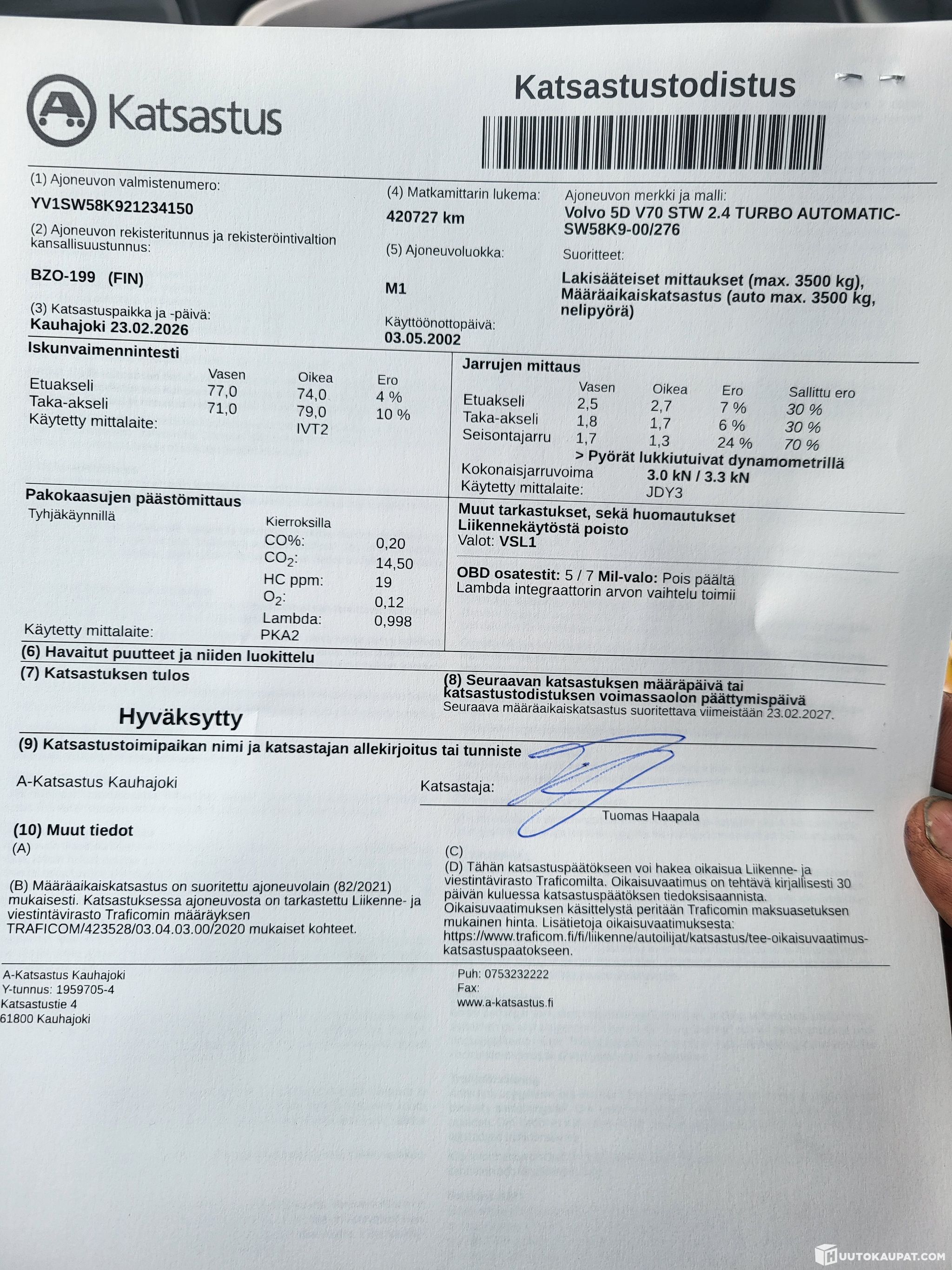The vehicle must be collected within 7 days of the auction ending unless otherwise agreed - Huutokaupat.com.
