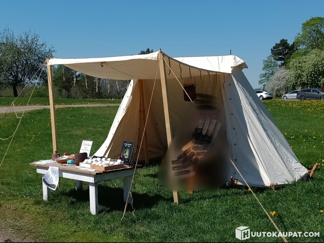 According to information received: an A-frame (Finnish handmade, made summer 2025) and a BM Saxon tent (handmade, estimated c. 2020).