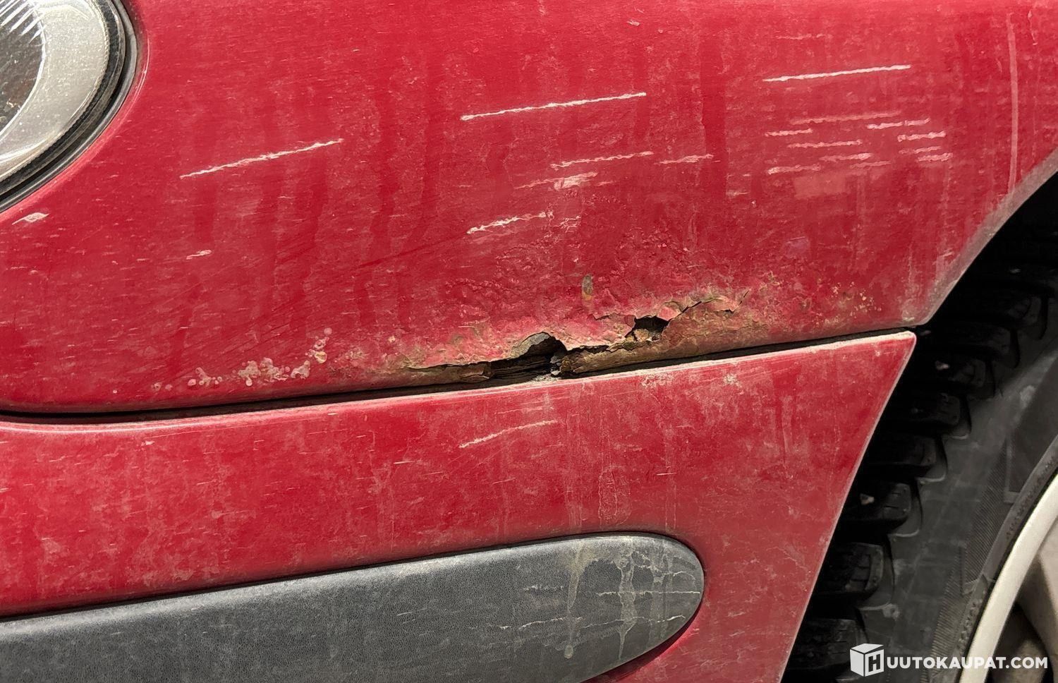 The car has rust and paint damage.