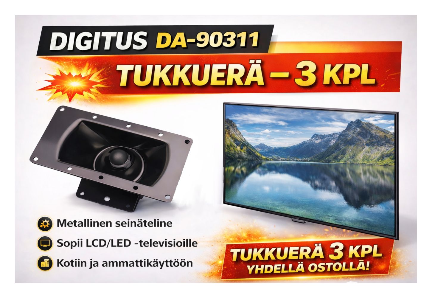 📺 WHOLESALE LOT: 3 pcs Digitus Wall Mounts for LCD TVs to the highest single bidder.