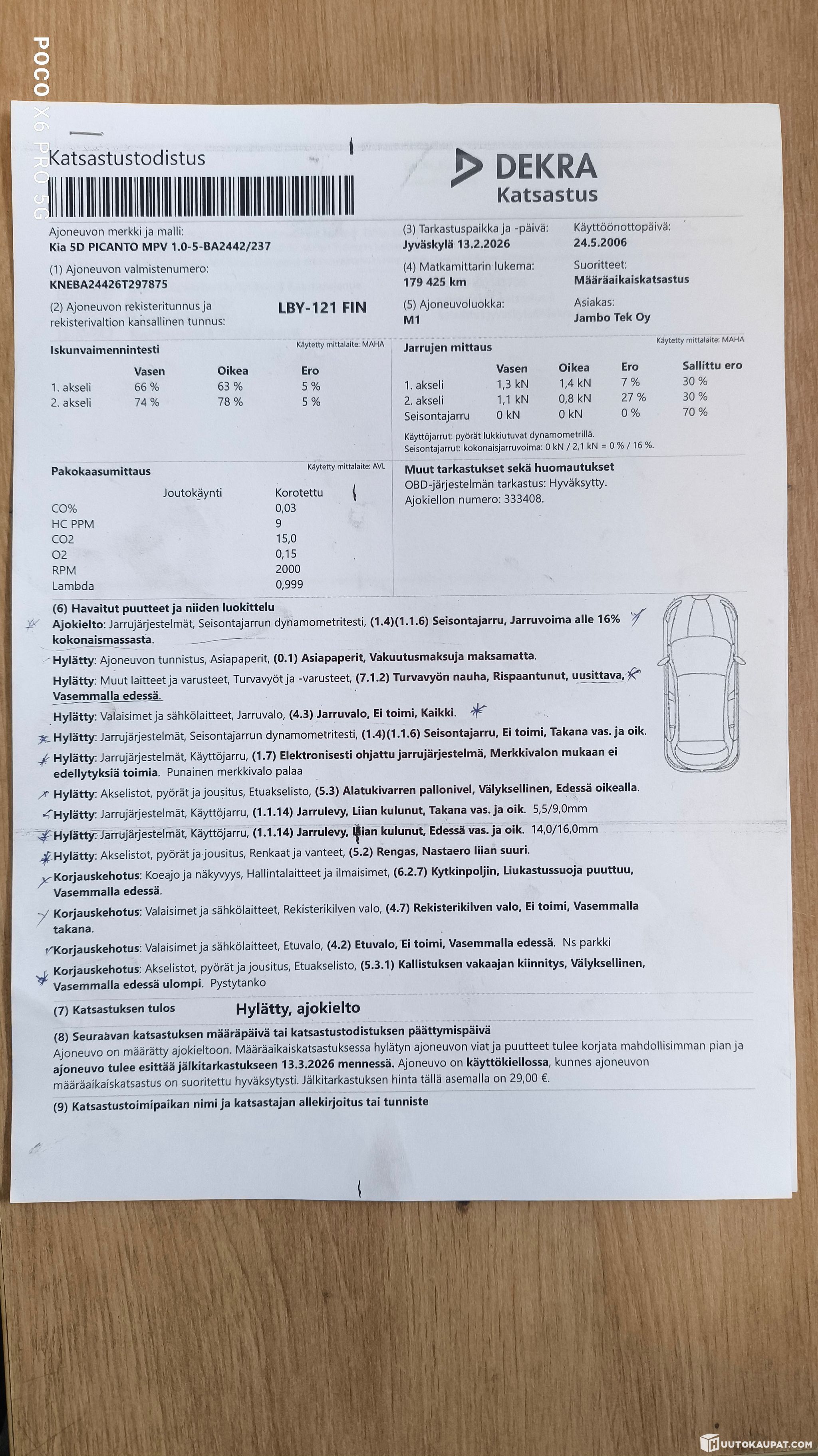 13 February 2026 Periodic inspection failed