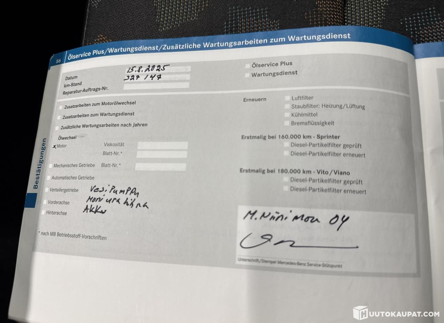 Last service carried out at 327,147 km in Aug 2025