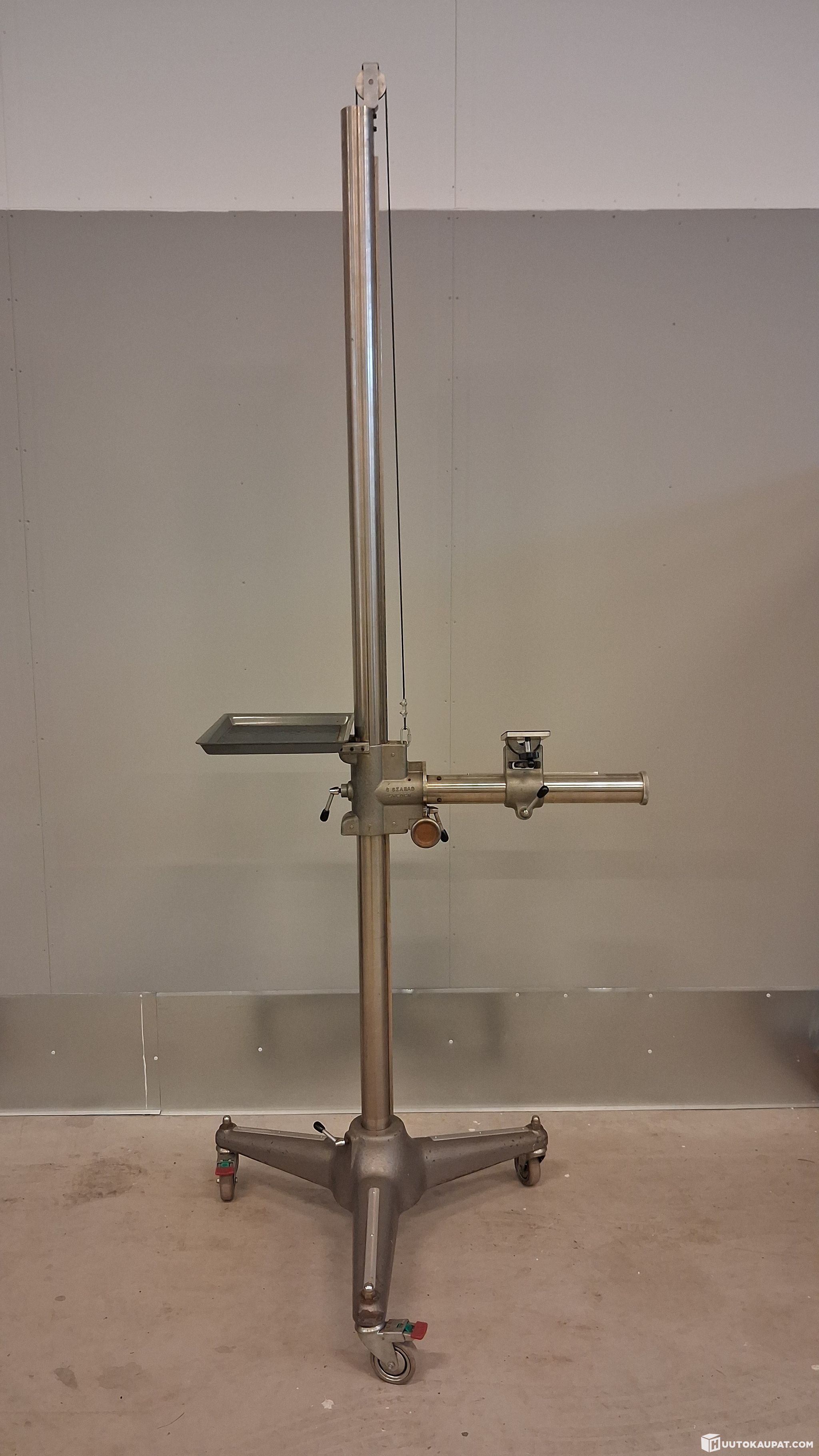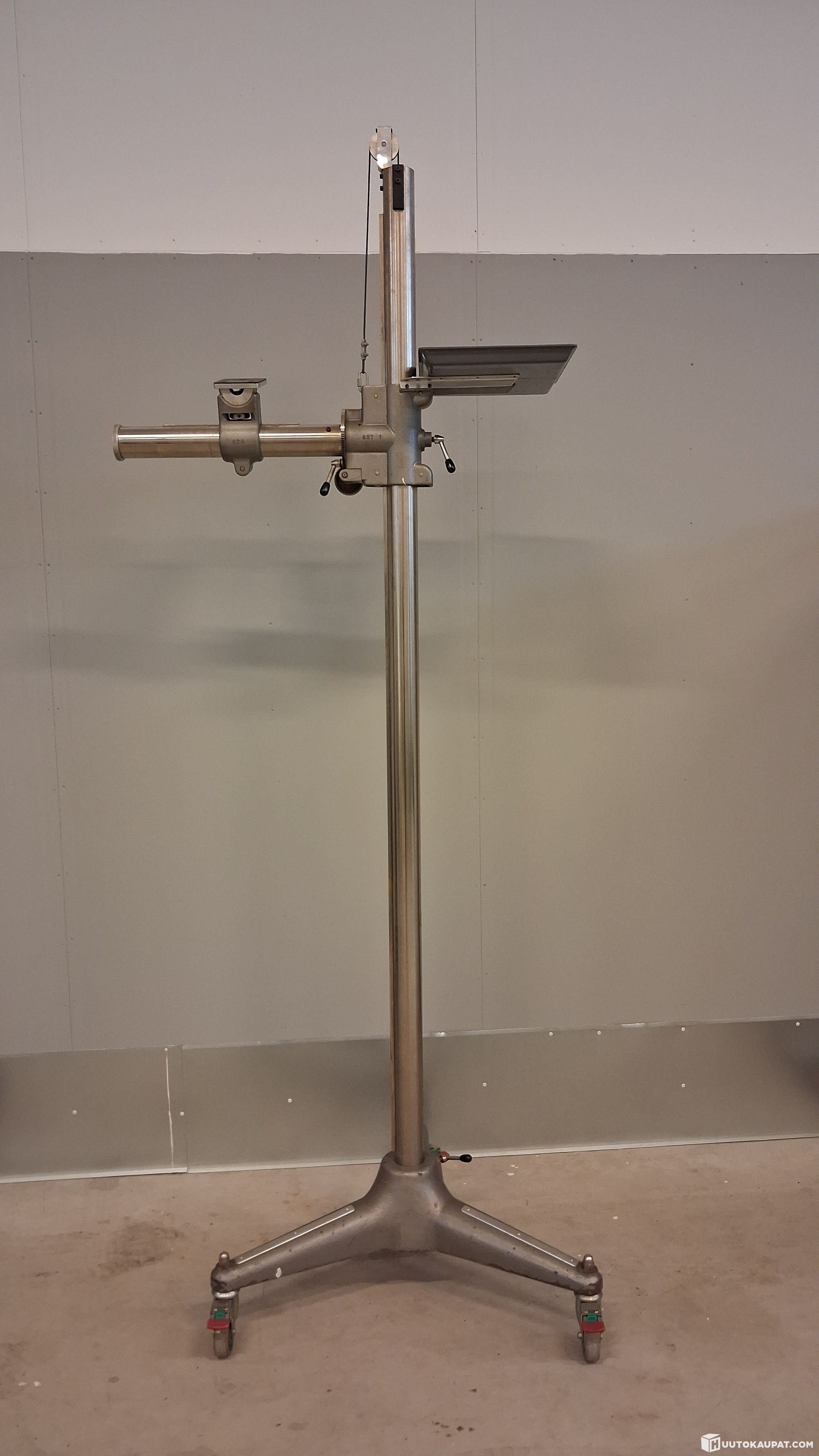 Studio stand as shown in the photos, suitable for photography and/or videography. Old but fully functional professional stand, very stable; the boom moves up and down on a counterbalance system with a cable.