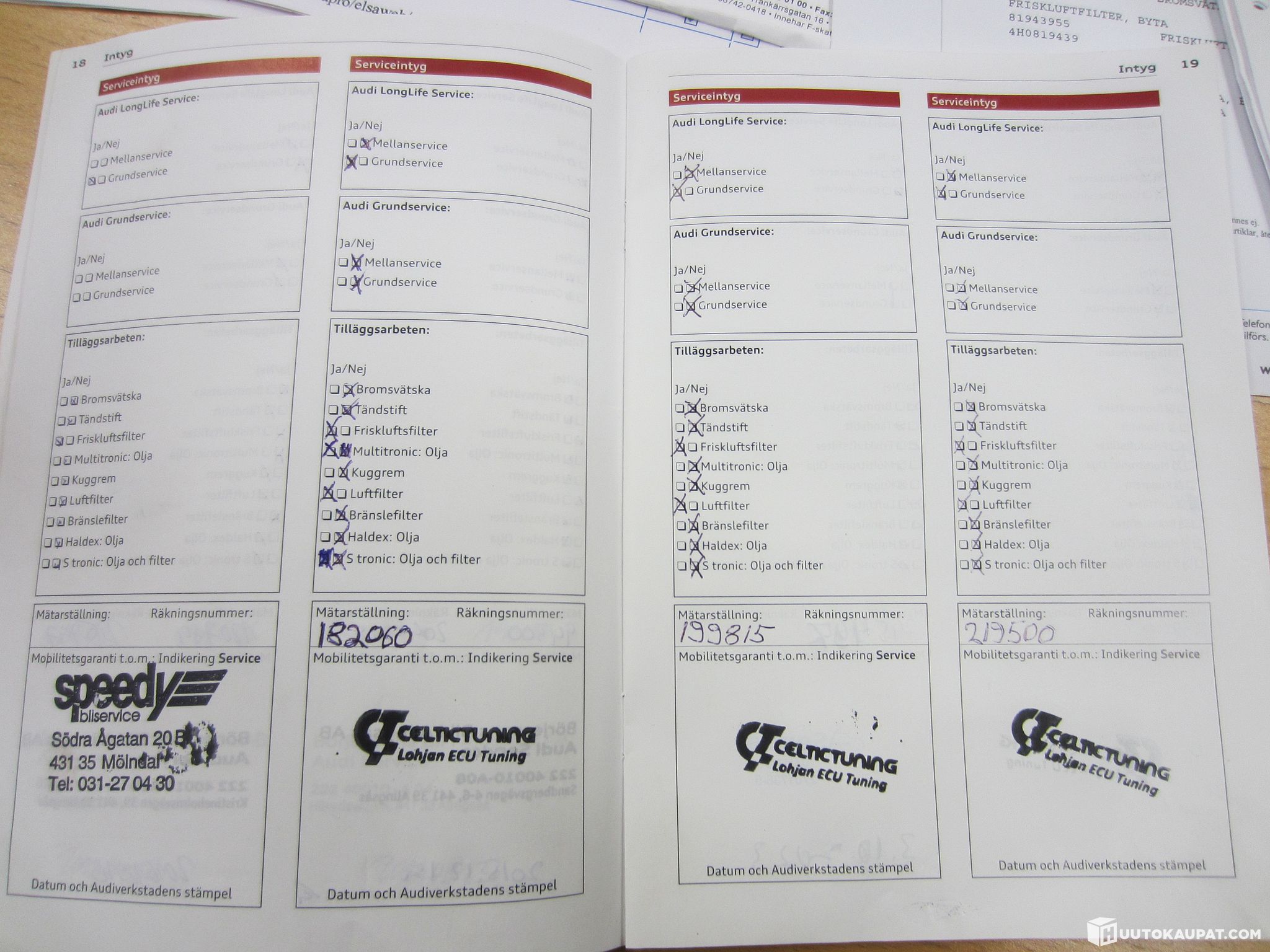 Service book; last service done at 245,000 km