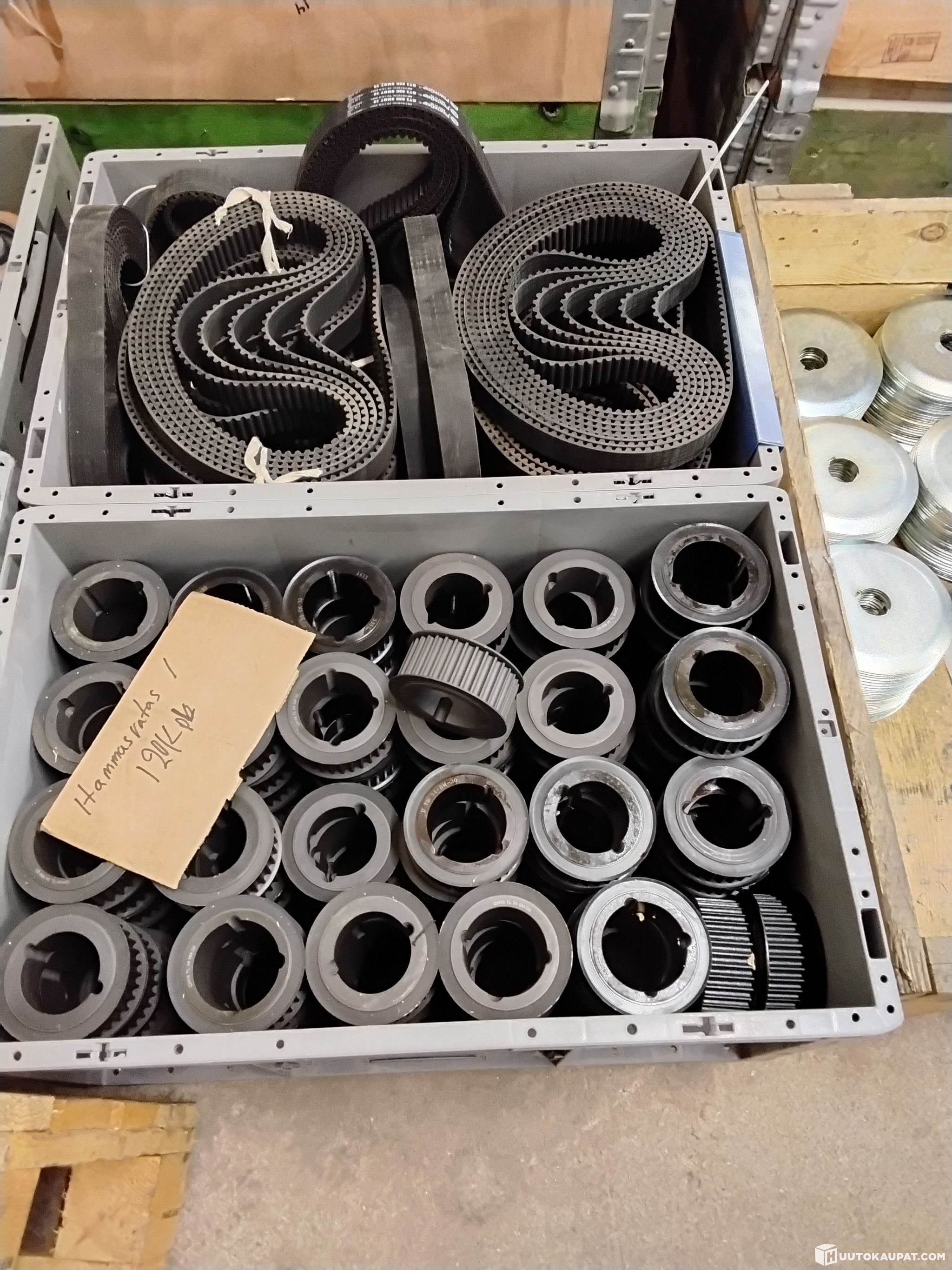 Box of timing gears and matching toothed belts. The belts are of various lengths. I will measure the belts and provide the dimensions shortly.
