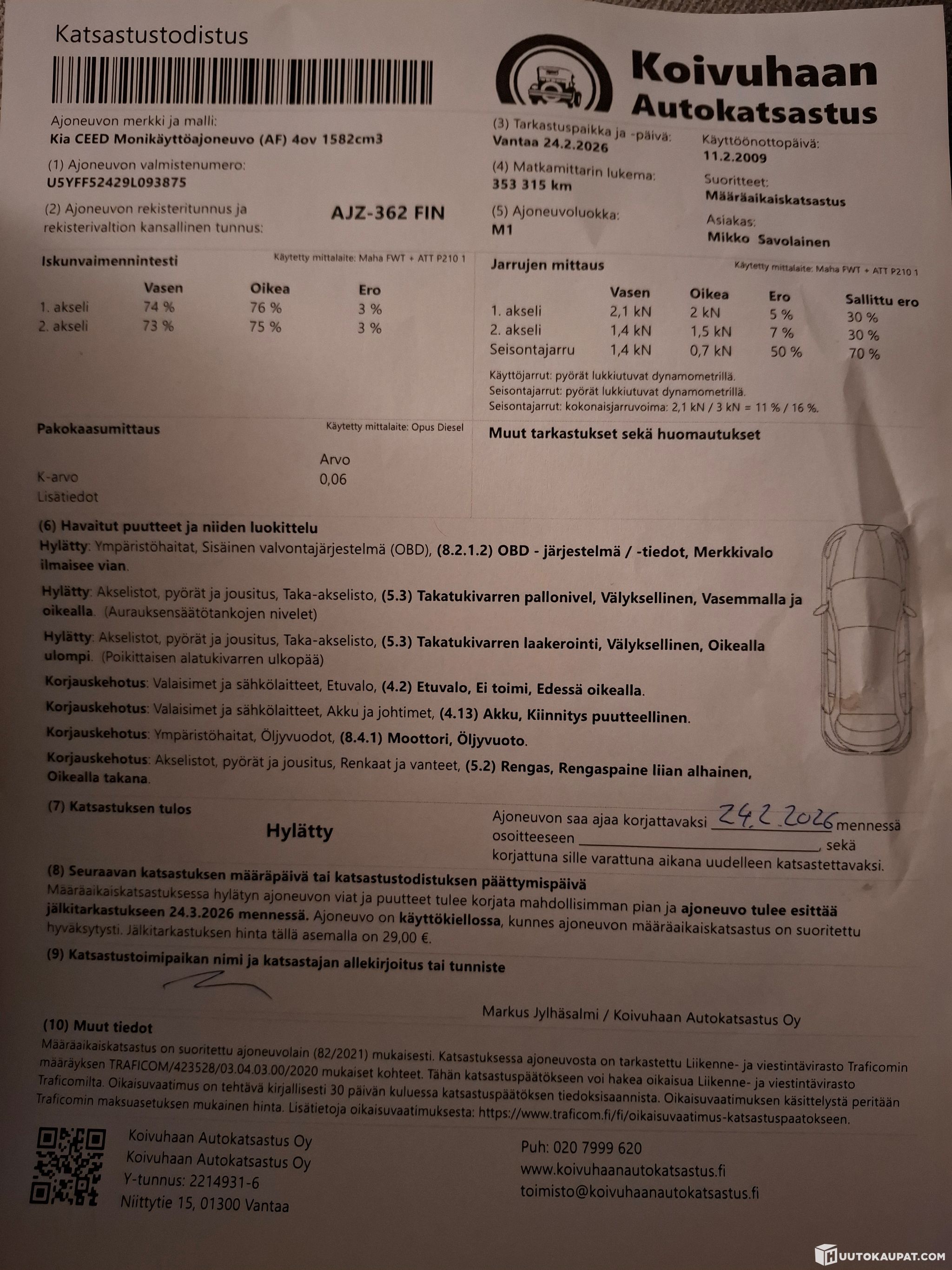 The car failed the MOT; see the inspection certificate in the photos.
