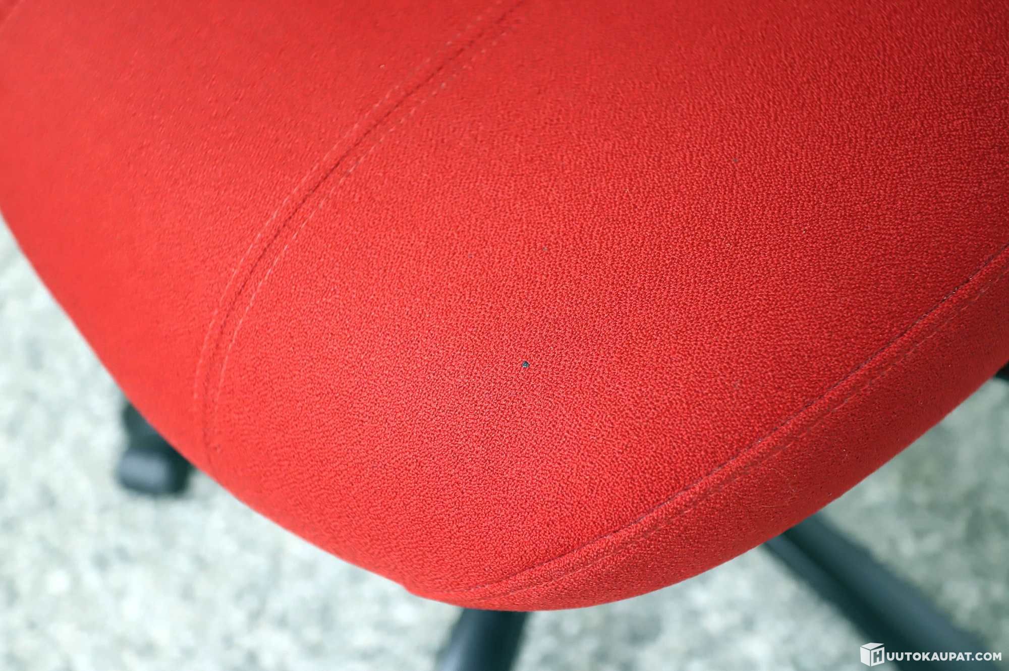 Red, intact upholstery parts. Small stain on the seat upholstery, almost unnoticeable; otherwise in good condition, see pictures.