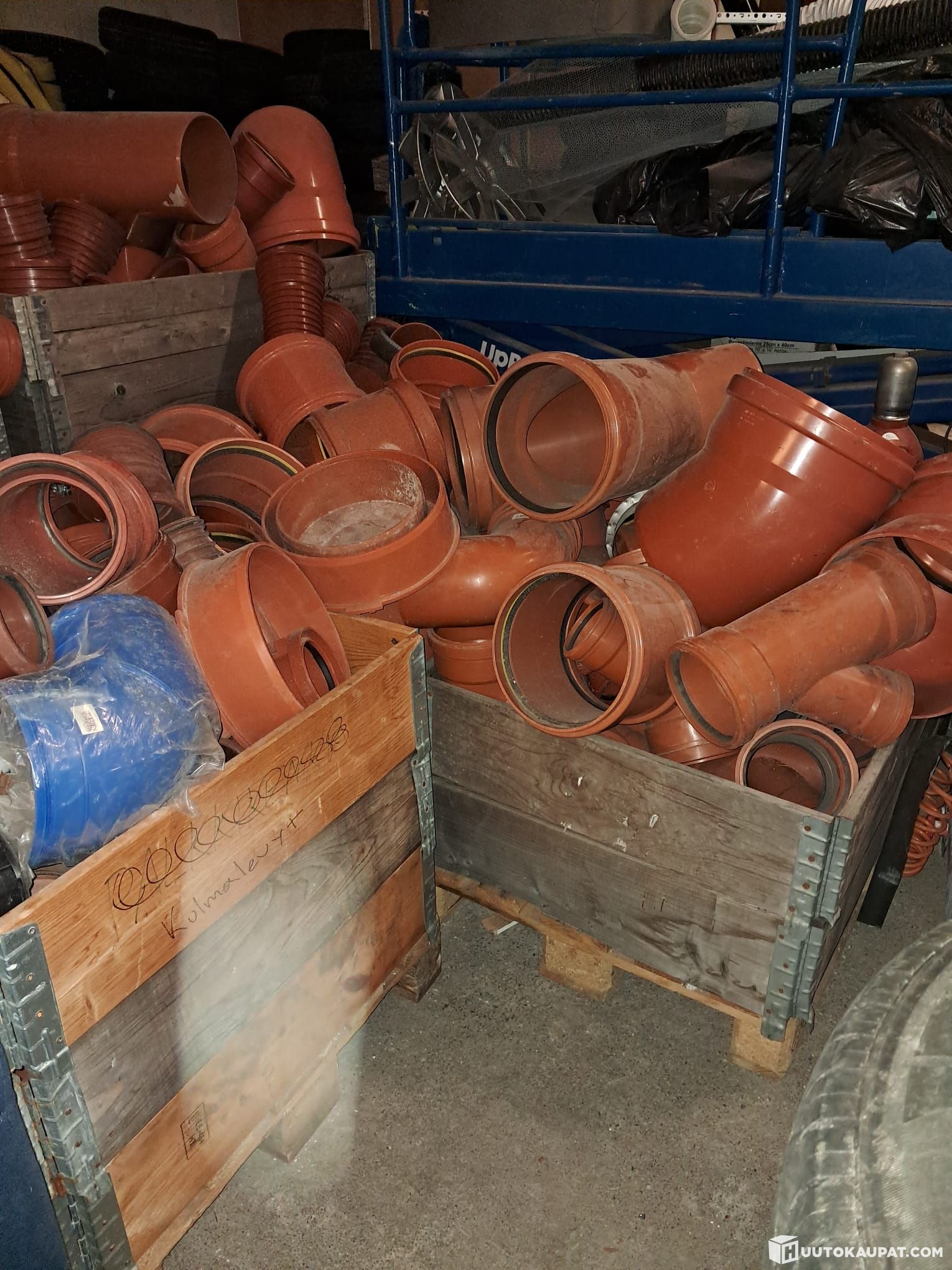 Only KG drainage pipe parts and fittings are included. Metal shelving shown in the photos is not included in the sale.