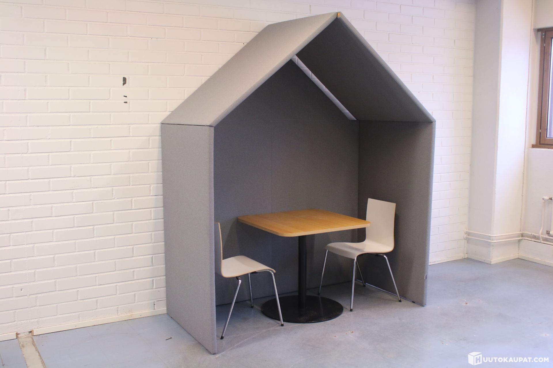"The Hut" s simple straight lines take inspiration from the classic game Monopoly and its game pieces, which give timeless shapes to the popular and practical "room within a room" concept. The Hut suits many purposes: as a single-person workspace, a small meeting place or a relaxation area together with The Hut Sofa. The product was conceived by Workspace employee Dong Uk Lee; Götessons is responsible for the design and manufacture.
