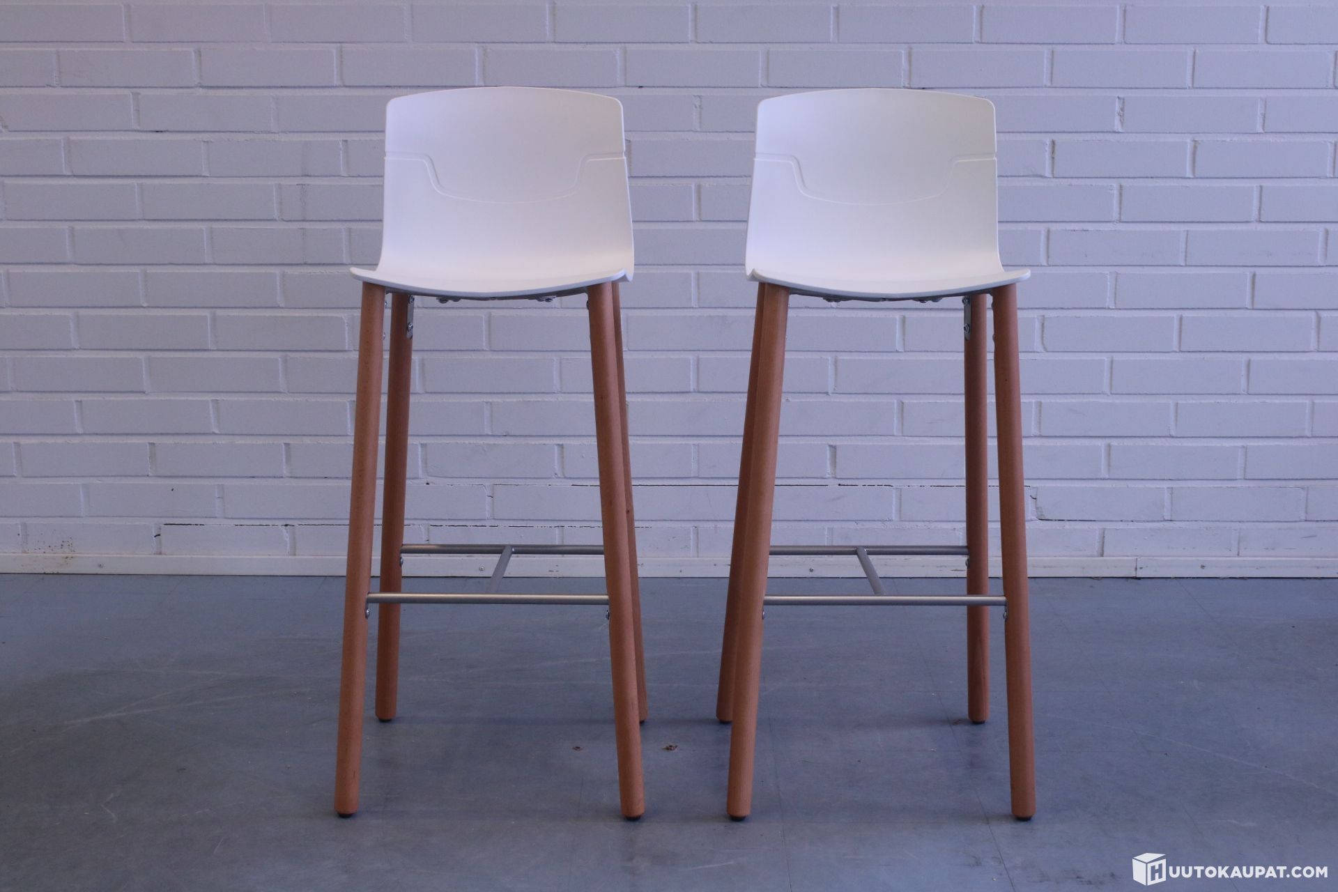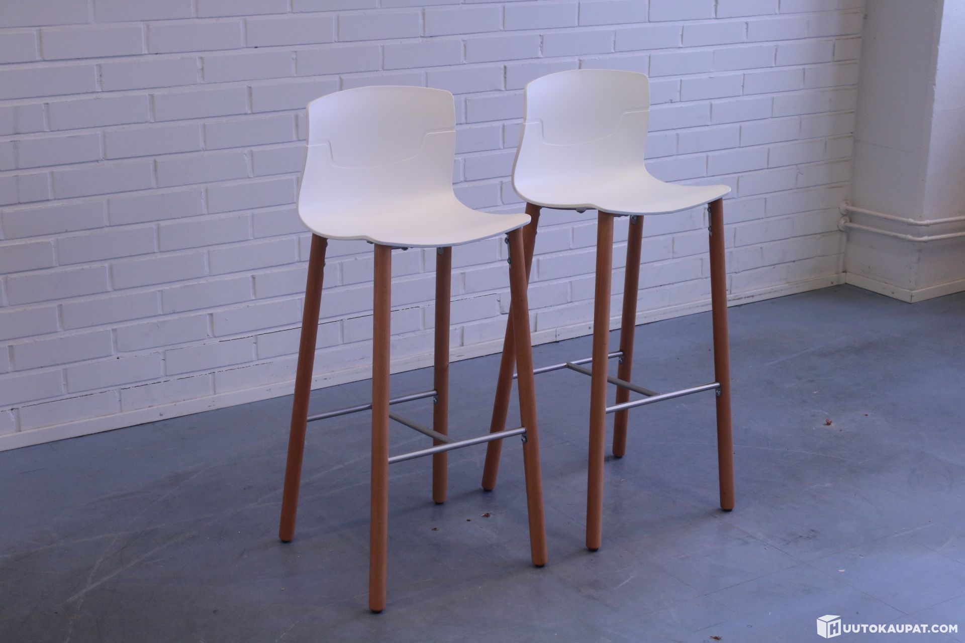 Two stylish Gaber Slot bar stools. The wooden legs are beech.