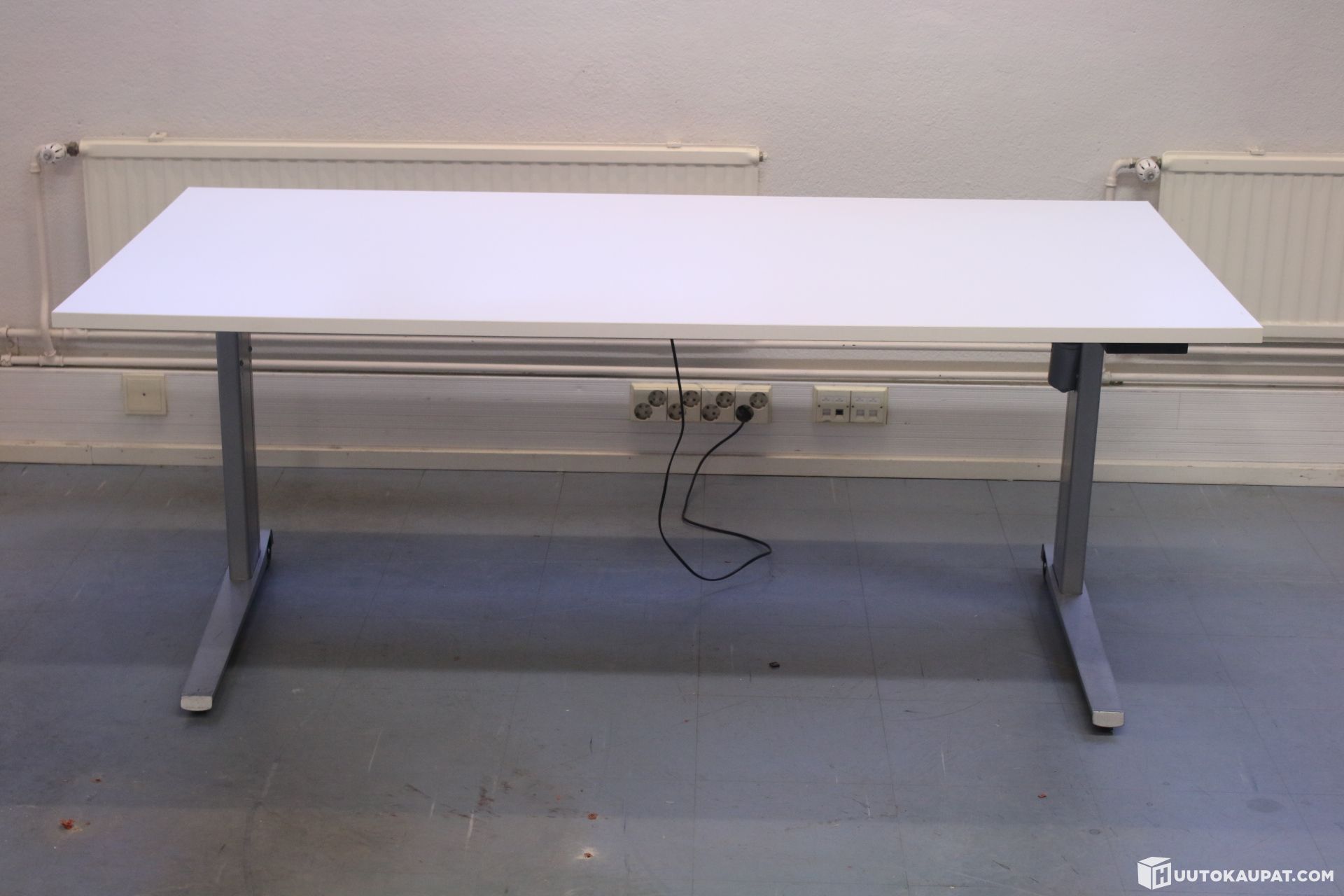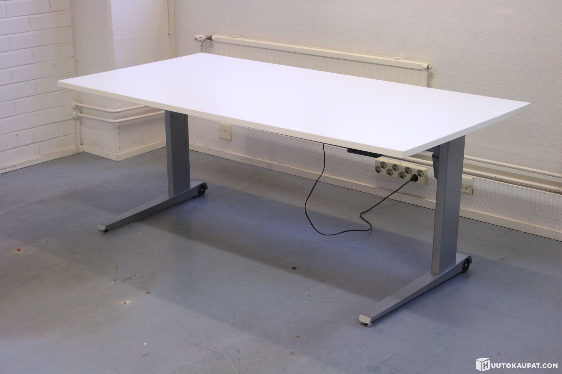 Electric desk with a sturdy frame.