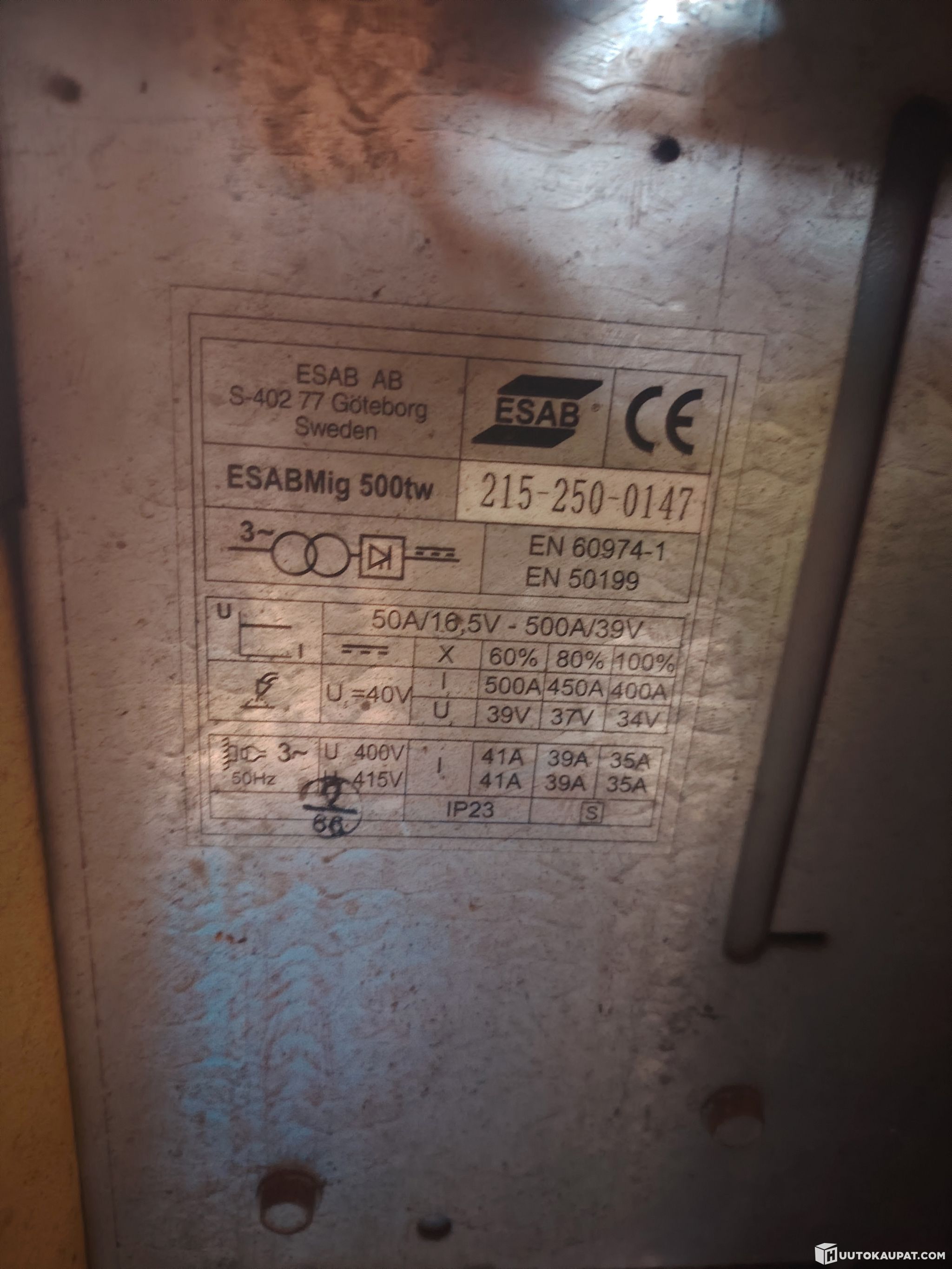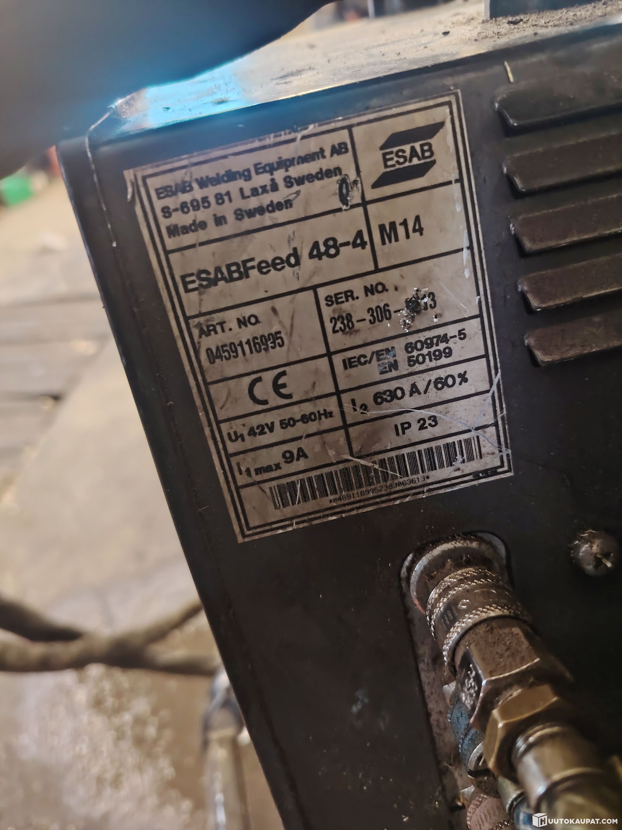 Directly from use: Esab MIG 500TW + EsabFeed 48-4. The item is sold as described and in the condition at the time of sale. Gas cylinder, regulator and welding mask are not included in the sale.