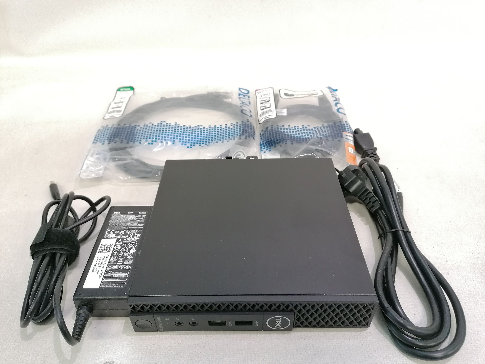 Included: power cable, DisplayPort and Ethernet cable.