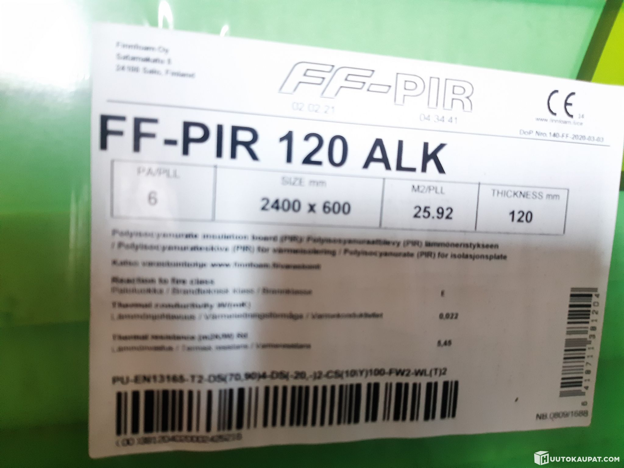 For sale: 21 pieces (7 packs) of Finnfoam FF-PIR polyurethane boards.