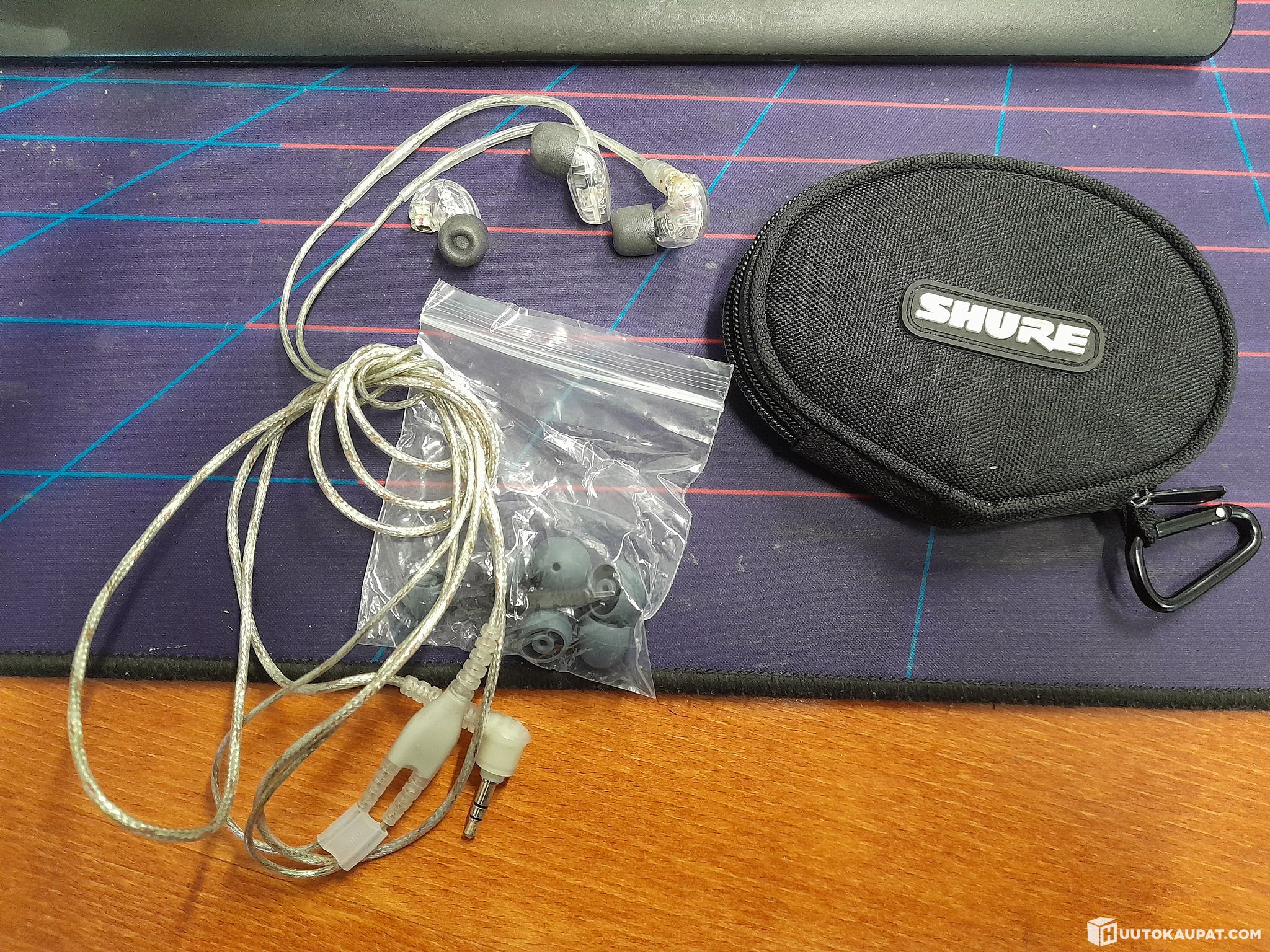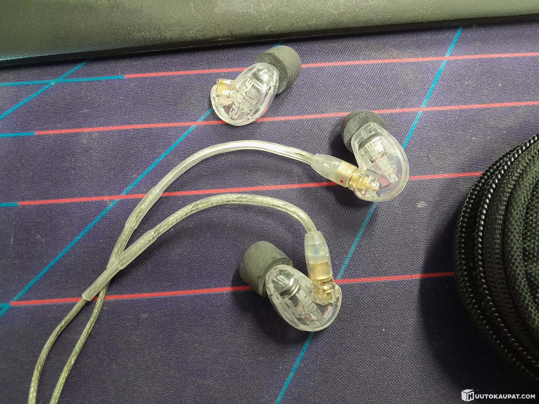 Used but working, includes 1 left and 2 right buds, EAC64CL replacement cable, ear tips and a protective pouch.