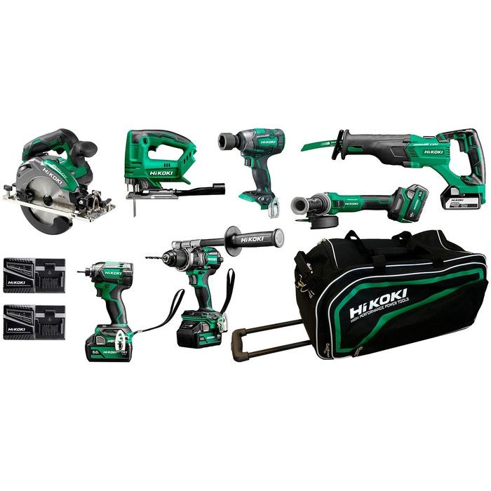 HIKOKI JUMBO COMBO WITH SEVEN POWERFUL AND DURABLE TOOLS, FOUR 5.0 Ah BATTERIES AND TWO CHARGERS!