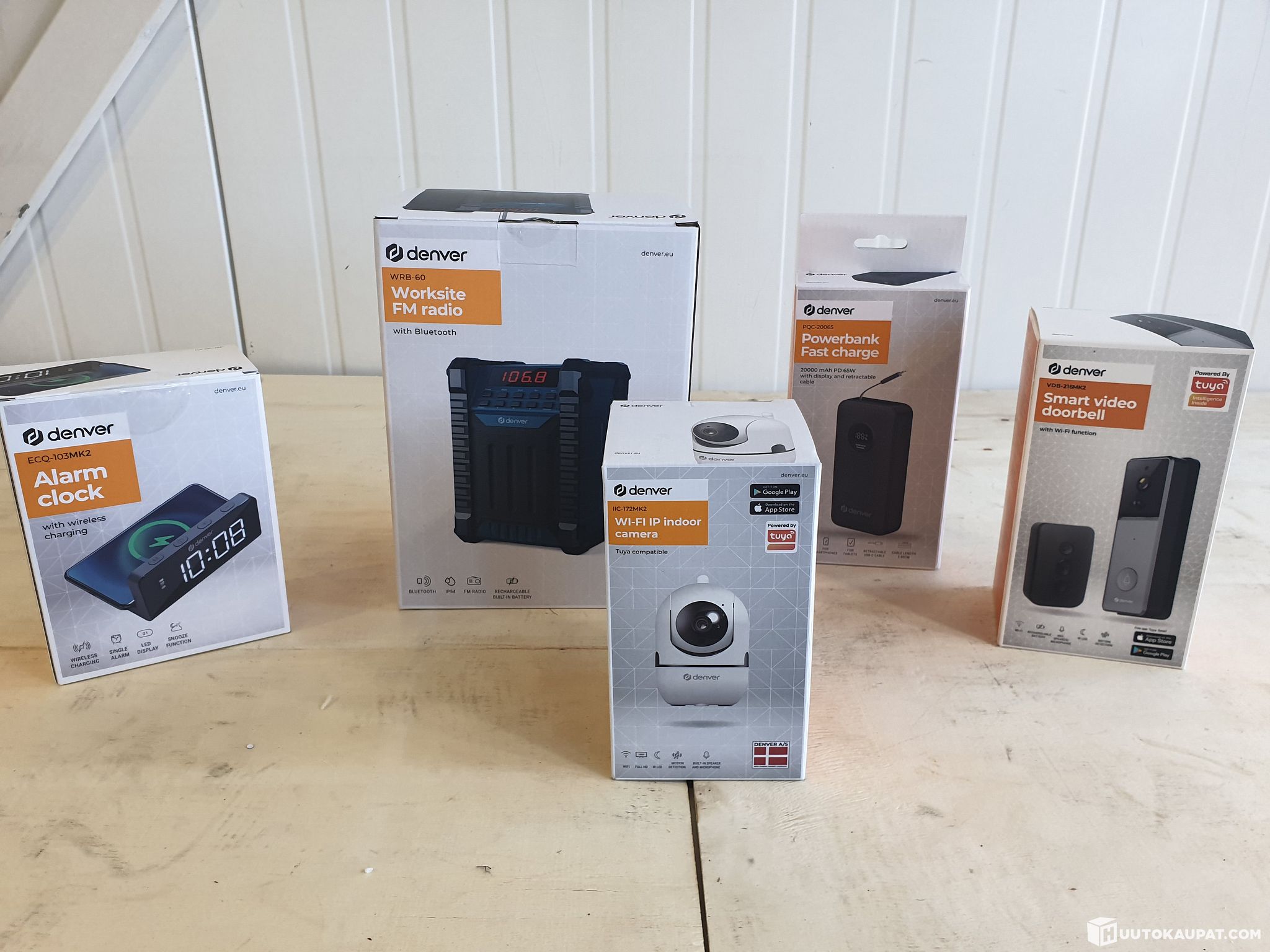 Includes: jobsite radio, doorbell with camera, Wi‑Fi IP surveillance camera, alarm clock with wireless phone charging, power bank.