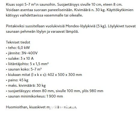 For further information about the item and matters related to its sale you can ask the advertiser. For other matters you may contact Huutokaupat.com's customer service. Consumers' purchases are subject to the right of withdrawal under the Consumer Protection Act; the terms and restrictions are set out in the terms of sale.