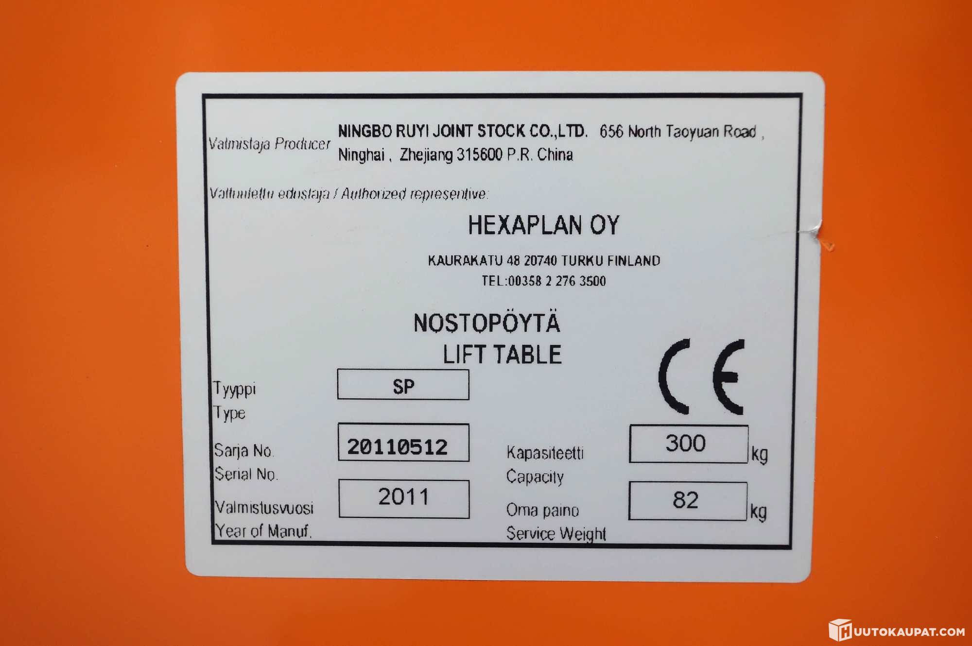 Lifting capacity: 300 kg.
