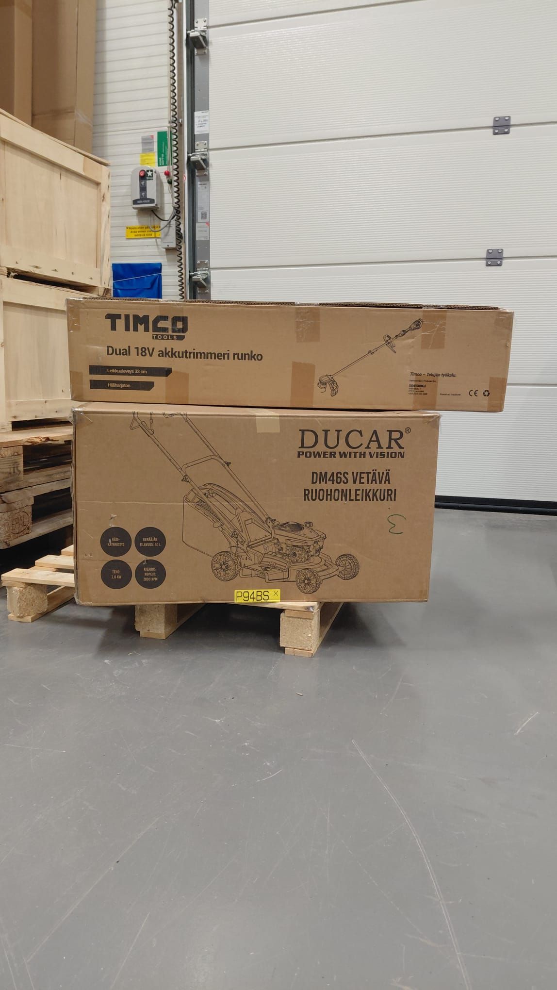 Delivered on a pallet in a wooden crate.